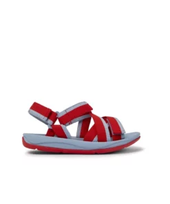 Red and blue women’s sandals with 100% recycled polyethylene terephthalate straps, ethylene vinyl acetate outsoles, and a hook-and-loop closing system. Match sandal is a testament to comfort and design simplicity with easy-fit straps made from 100% recycled polyethylene terephthalate and a lightweight outsole.