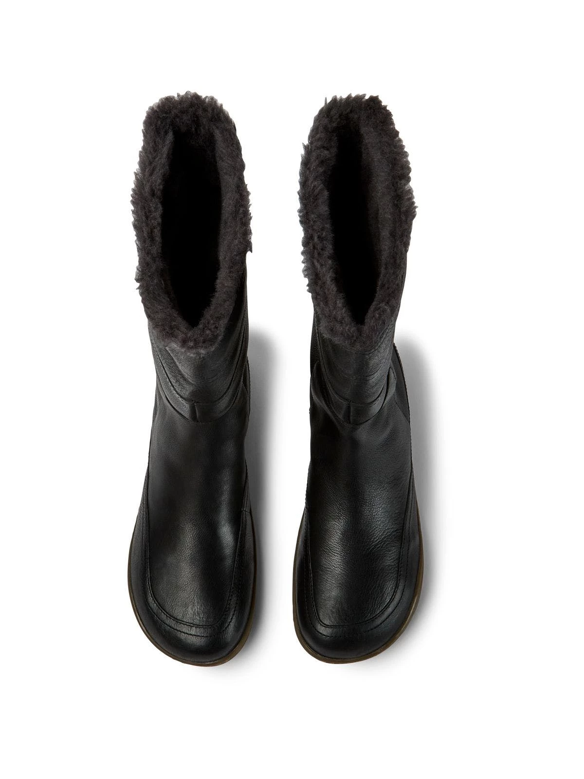 Black mid boot for women. Full grain leather with TPU outsole.Peu women’s shoes are modeled after the shape of the foot with a unique silhouette that retains all the benefits of barefoot walking.