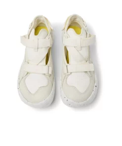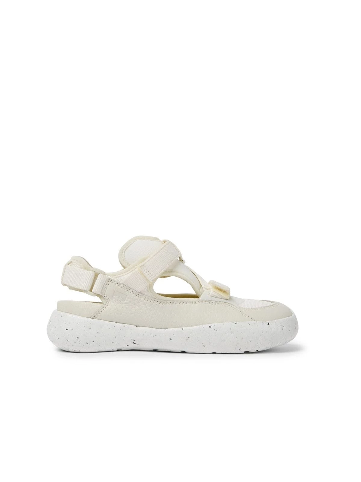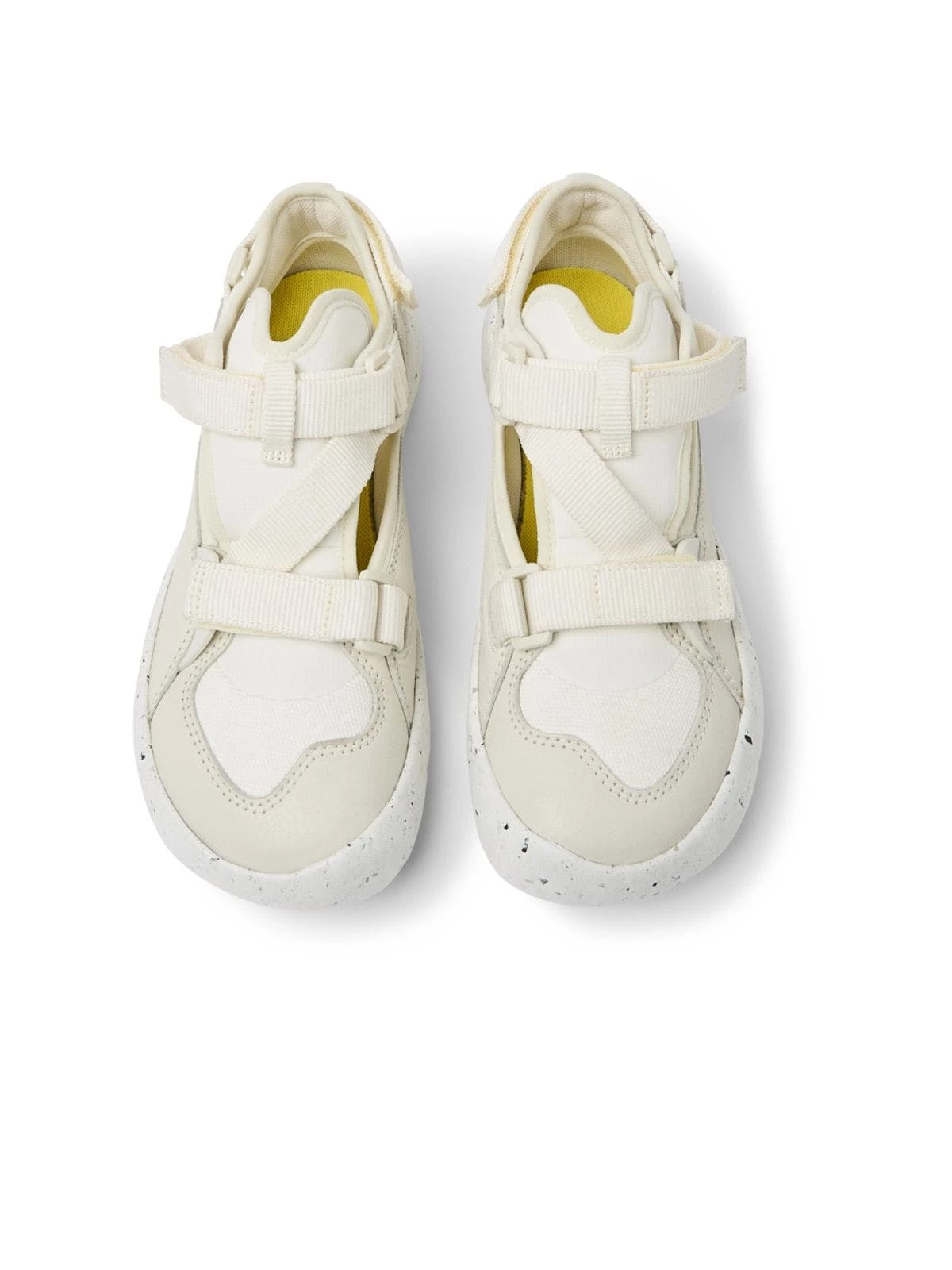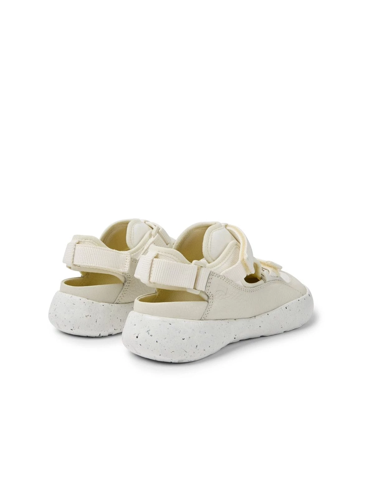White recycled PET webbing, organic cotton and leather women’s semi-open sneakers with XL EXTRALIGHT® Sustainable+ outsoles (51% recycled EVA) and a hook-and-loop closing system. Peu Stadium is a reinvented version of our iconic Peu Cami, featuring bold volume and clever details for a more contemporary look.