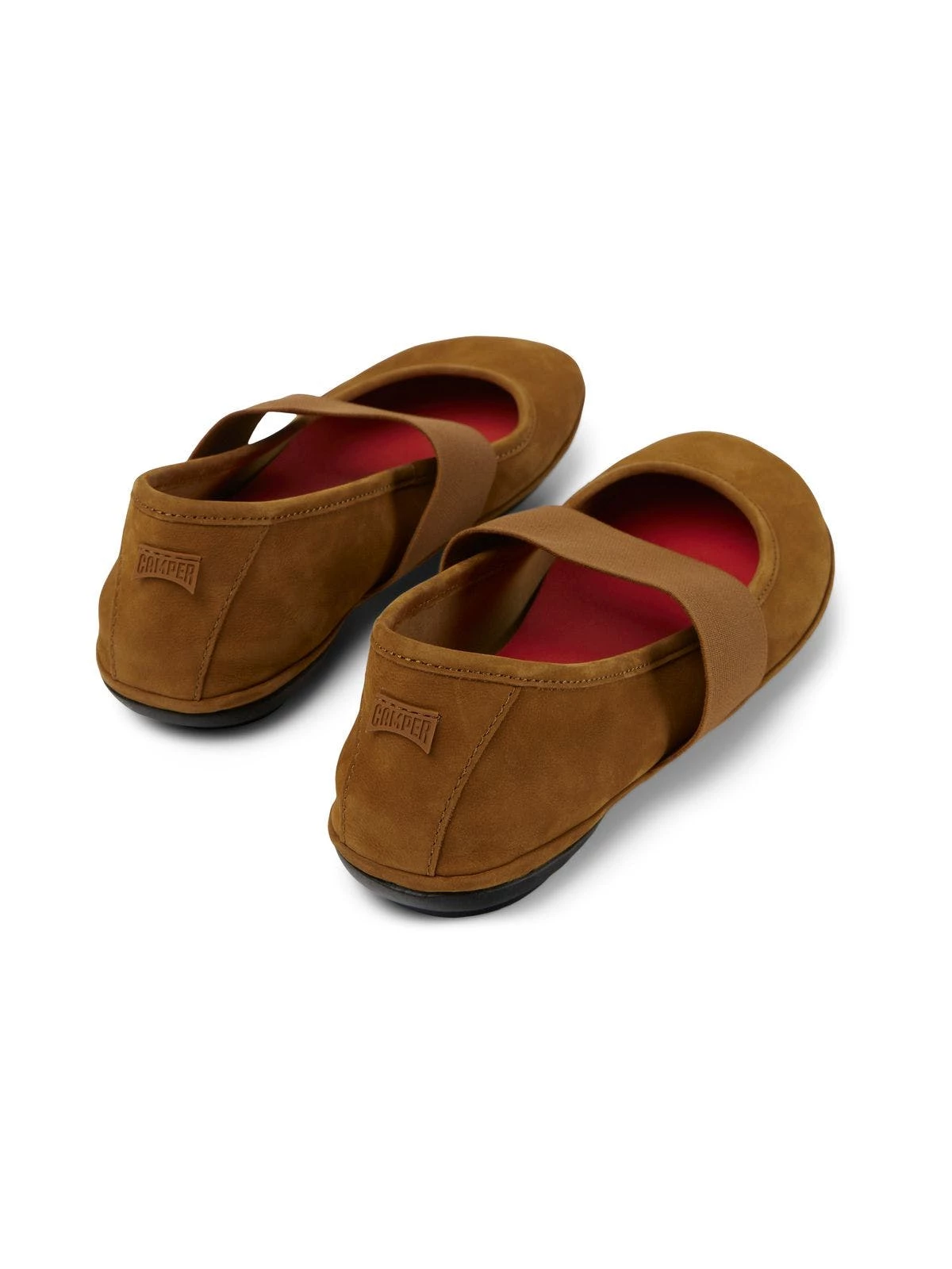 Brown nubuck women’s ballerina flats with rubber outsoles (20% recycled).First launched in 2005, Right combines the flexibility of ballerina slippers with the durable protection of street-ready rubber soles.