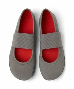 Gray nubuck women’s ballerina flats with rubber outsoles (20% recycled).First launched in 2005, Right combines the flexibility of ballerina slippers with the durable protection of street-ready rubber soles.