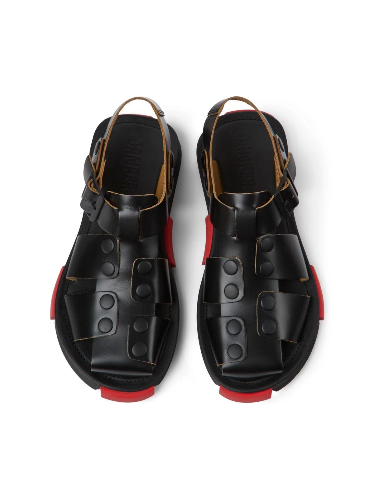 – Black leather women’s sandals with eva and rubber outsoles (20% recycled).- This set is a lightweight style with multi-material straps made with recycled materials that support the foot and the planet.