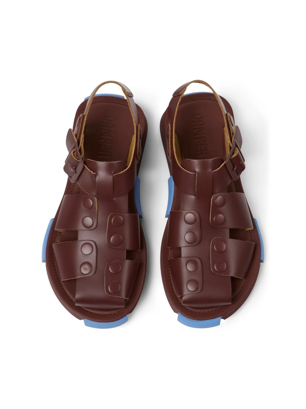 – Burgundy leather women’s sandals with EVA and rubber outsoles (20% recycled).- Set is a lightweight style with multi-material straps made with recycled materials that support the foot and the planet.