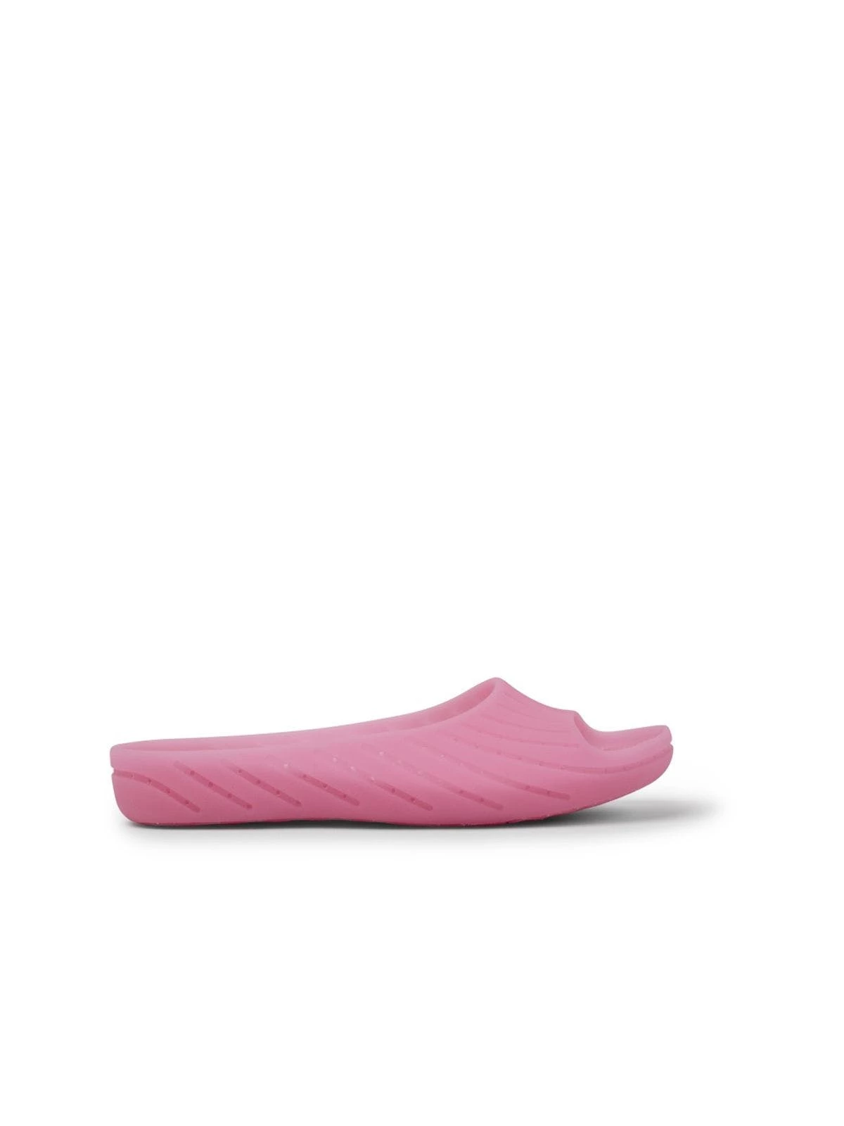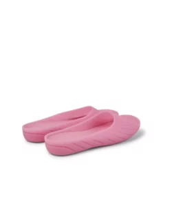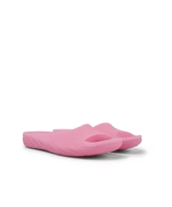 Pink monomaterial slip-on women’s sandals with 100% TPU outsoles (20% recycled) and removable PU footbed. Fully recyclable. Originally created to reduce materials and eliminate complex production processes, iconic Wabi represents decades-long push toward becoming more sustainable and circular.