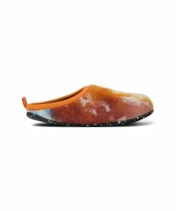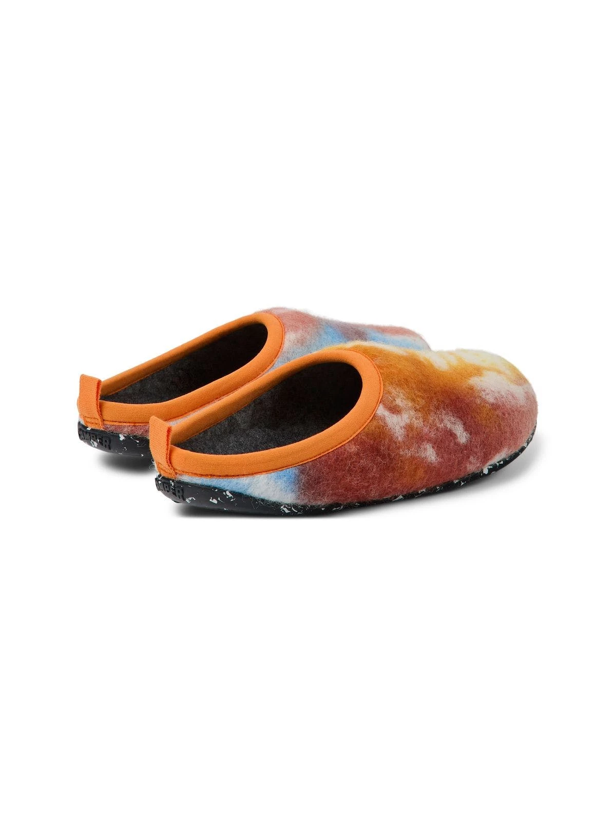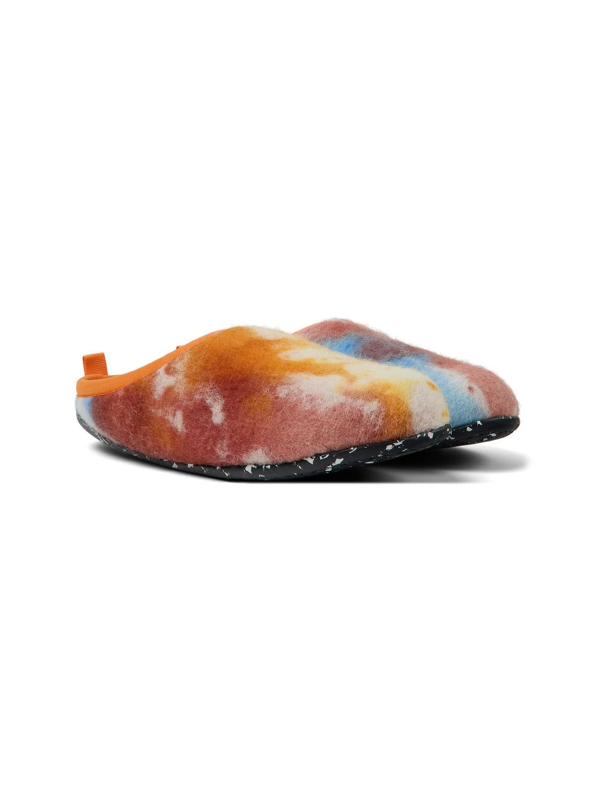 Orange, blue, and white recycled wool women’s slippers with eva footbeds and rubber outsoles.Iconic wabi slippers are inspired by japanese minimalism. Made with the idea of keeping components and production processes to a minimum, these slippers continue to redefine indoor comfort more than twenty years after their debut with soft cushioning and a cozy feel.