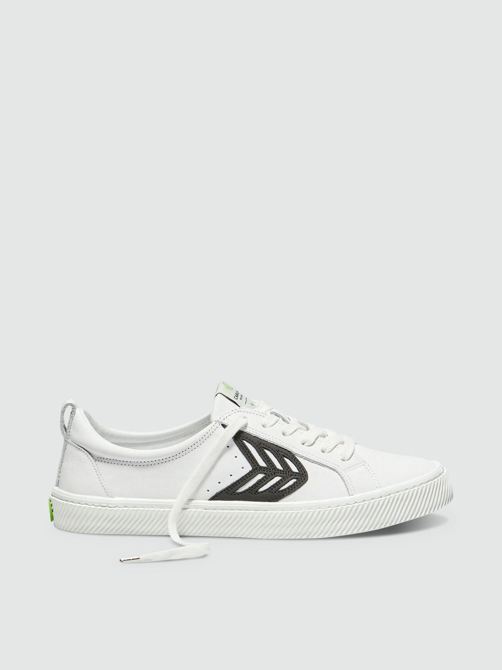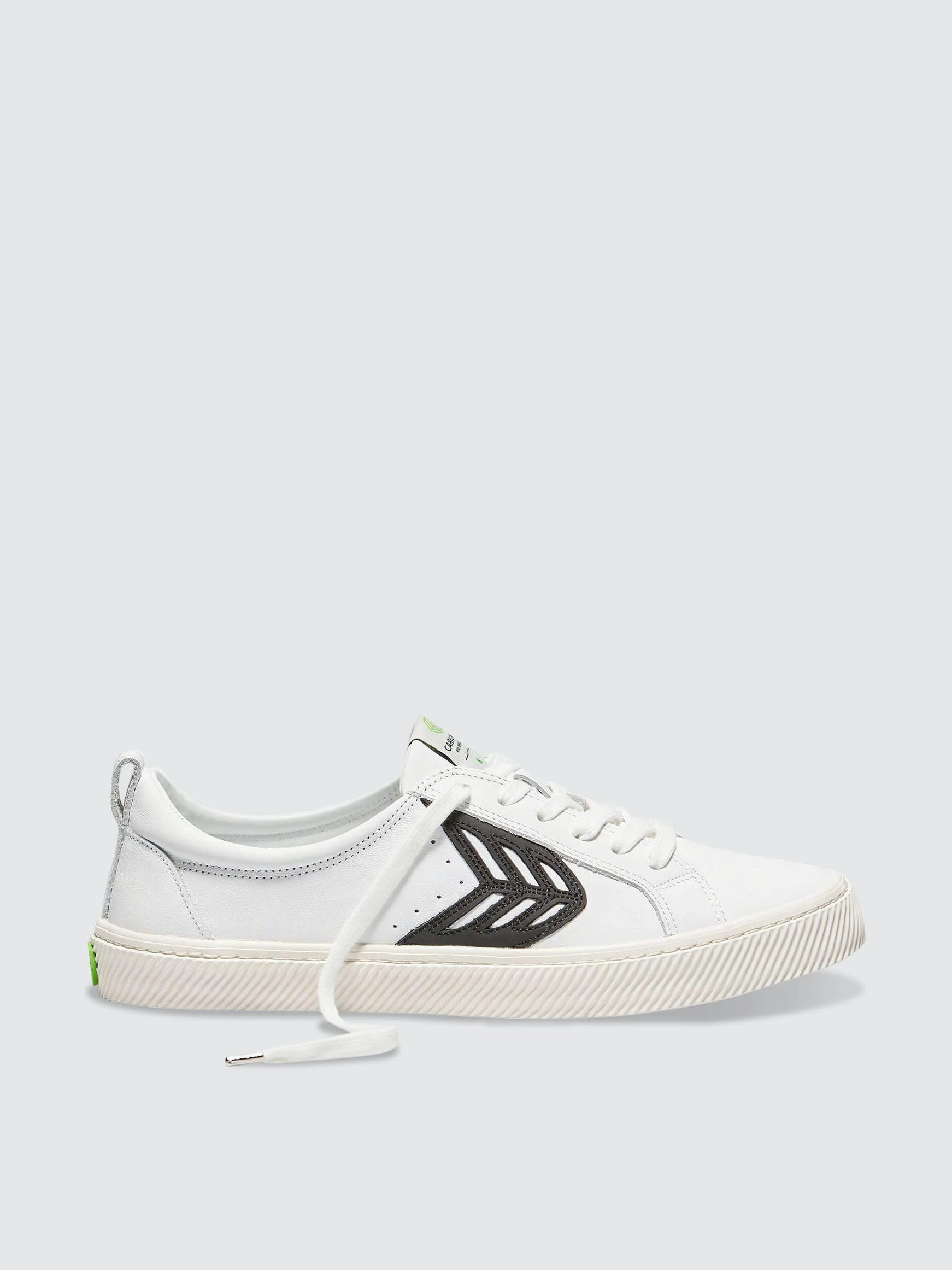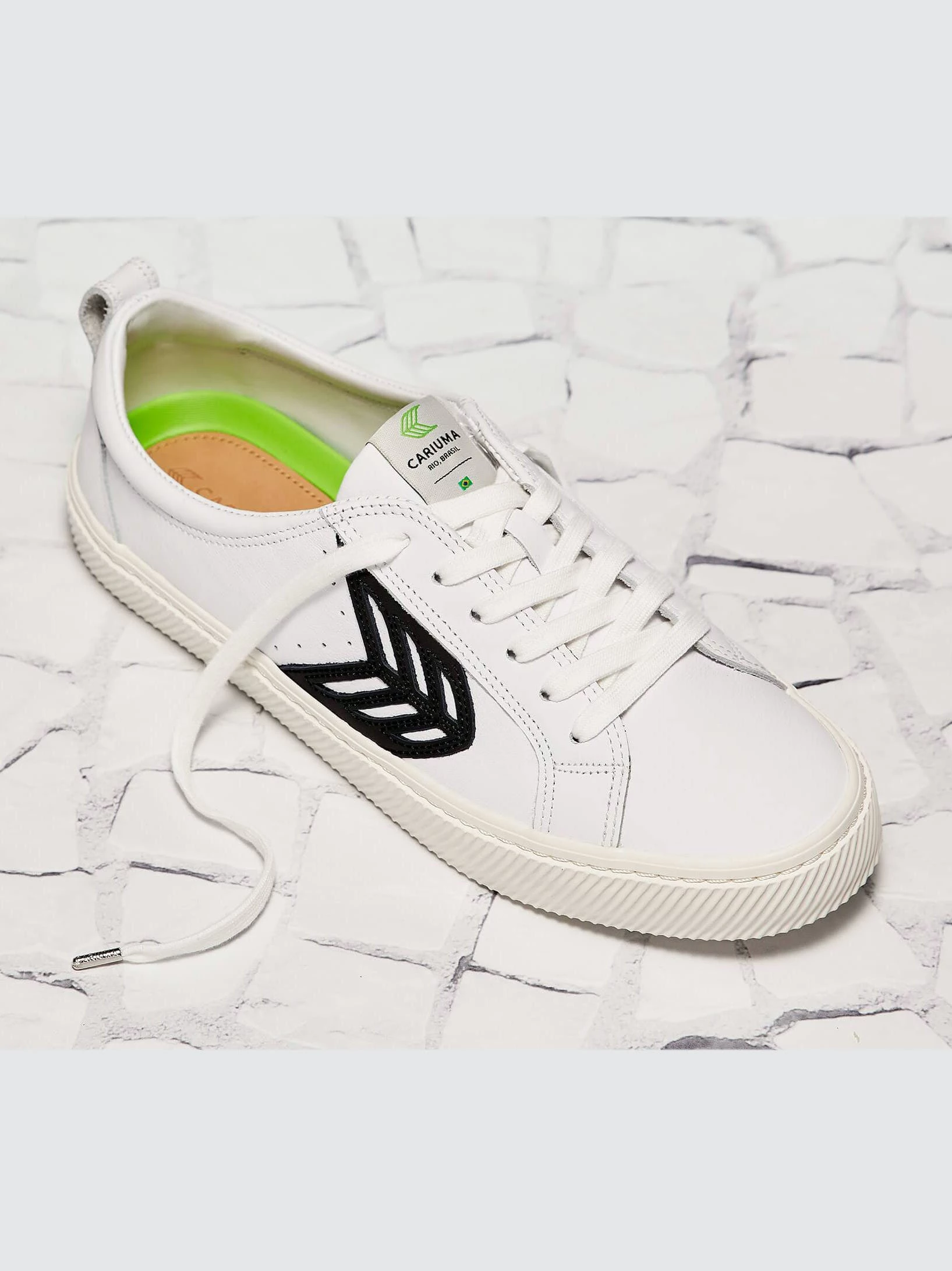 Our CATIBA Low White Leather & Black Logo exudes the kind of effortless cool-chic that goes superb with an oversized denim jacket. Throw the sneakers on, and you are ready for any occasion.Leather on leather, a combination that levels up your style while giving you the comfort that you need. Our handmade vulcanized CATIBA are crafted from a smooth, soft texture, that molds to your feet and fits even better the more you wear it.With the added details of debossed metal aglets, low-key CARIUMA branding and a fully stitched outsole, there’s really no other sneakers like the CATIBA Low Leather out there.