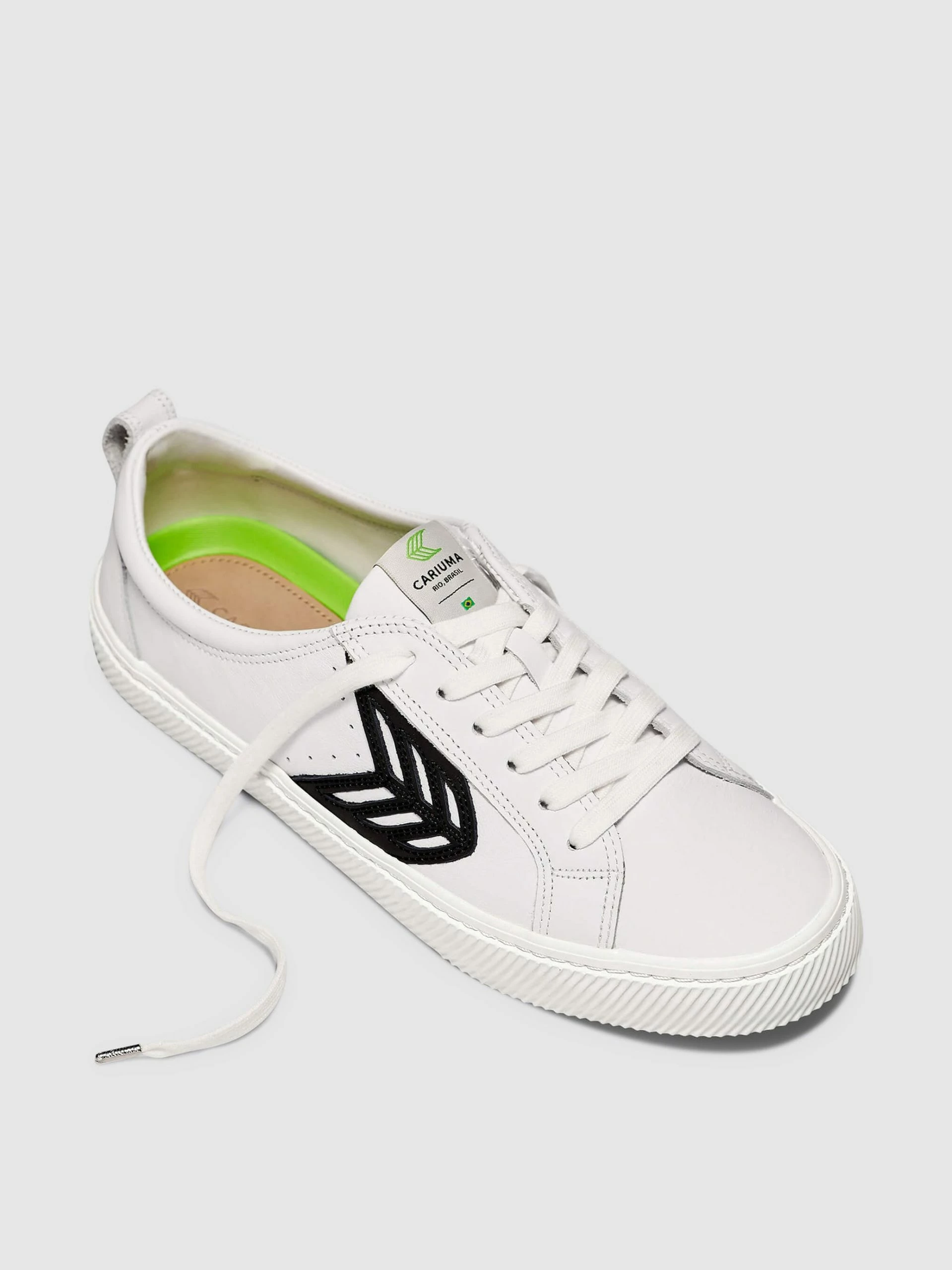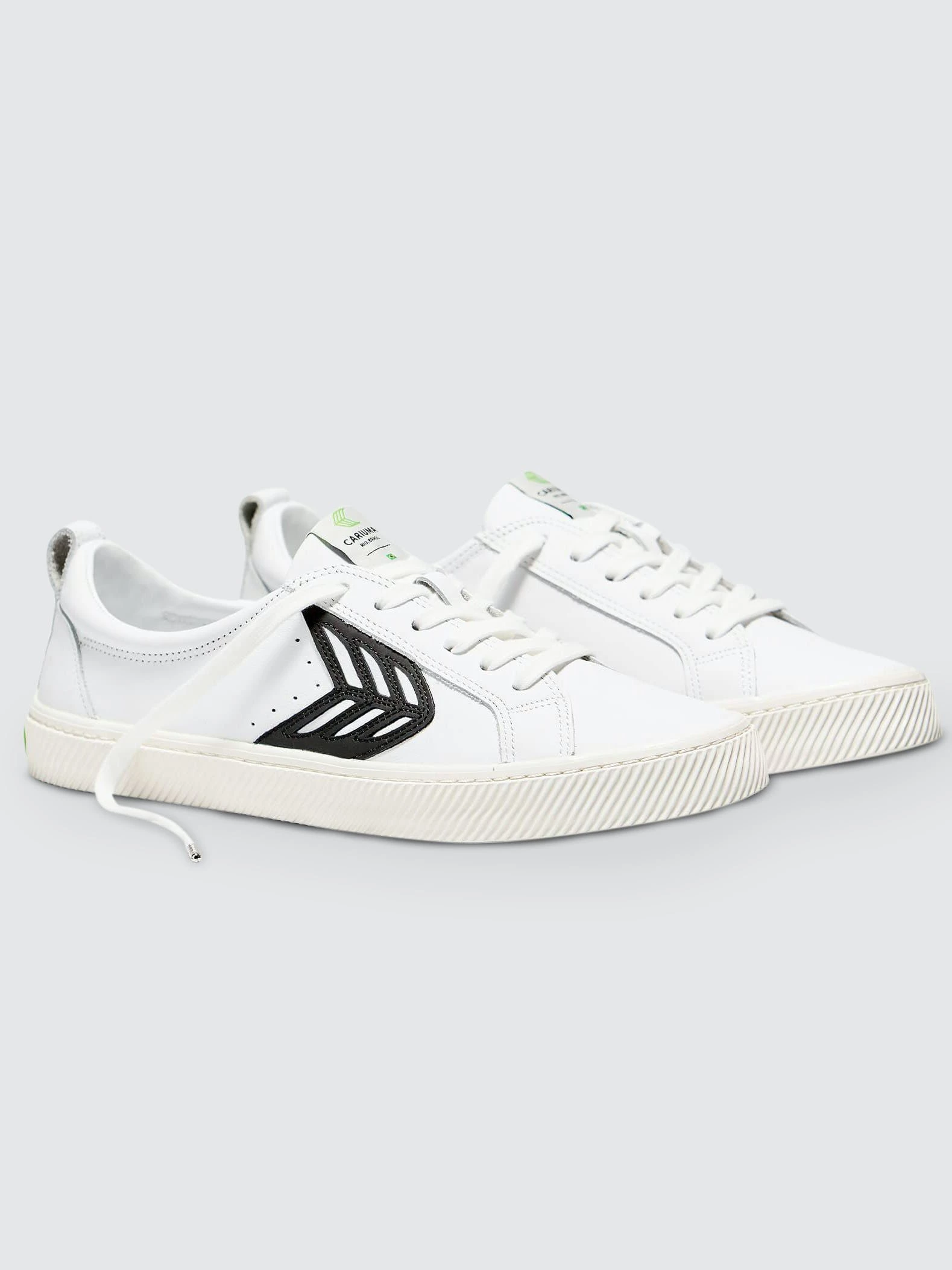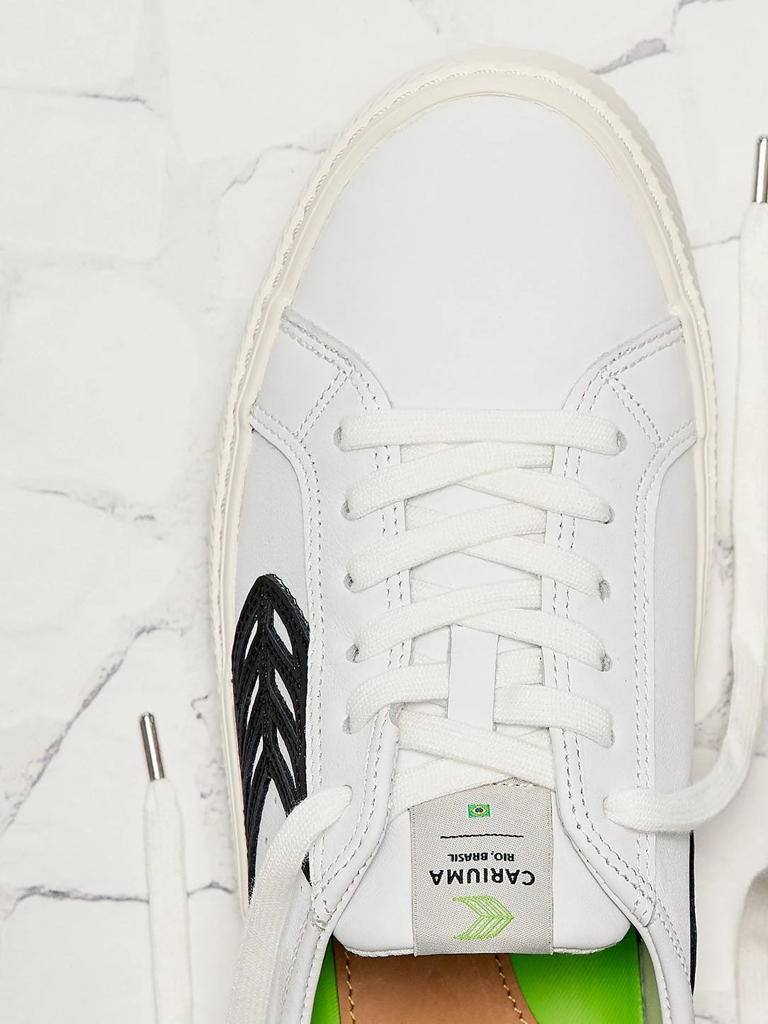 Our CATIBA Low White Leather & Black Logo exudes the kind of effortless cool-chic that goes superb with an oversized denim jacket. Throw the sneakers on, and you are ready for any occasion.Leather on leather, a combination that levels up your style while giving you the comfort that you need. Our handmade vulcanized CATIBA are crafted from a smooth, soft texture, that molds to your feet and fits even better the more you wear it.With the added details of debossed metal aglets, low-key CARIUMA branding and a fully stitched outsole, there’s really no other sneakers like the CATIBA Low Leather out there.