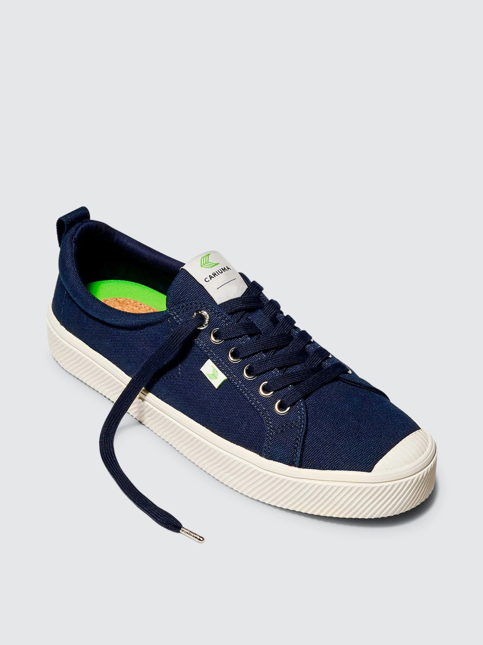 Sleek, refined yet understated. The OCA Low Navy is our take on the classic navy sneaker, with the laid-back spirit of Rio embedded into every stitch. Handcrafted using a robust canvas, the OCA Low Canvas exists at the intersection of functionality and style. With CARIUMA’s signature memory foam and leather hybrid insole, it ensures optimal comfort and fit. The OCA Low boast a unique cap toe design and a fully-stitched lightweight outsole for a durable, long-lasting shoe.Finishing our OCA Low sneakers with debossed metal aglets…it’s all in the details!