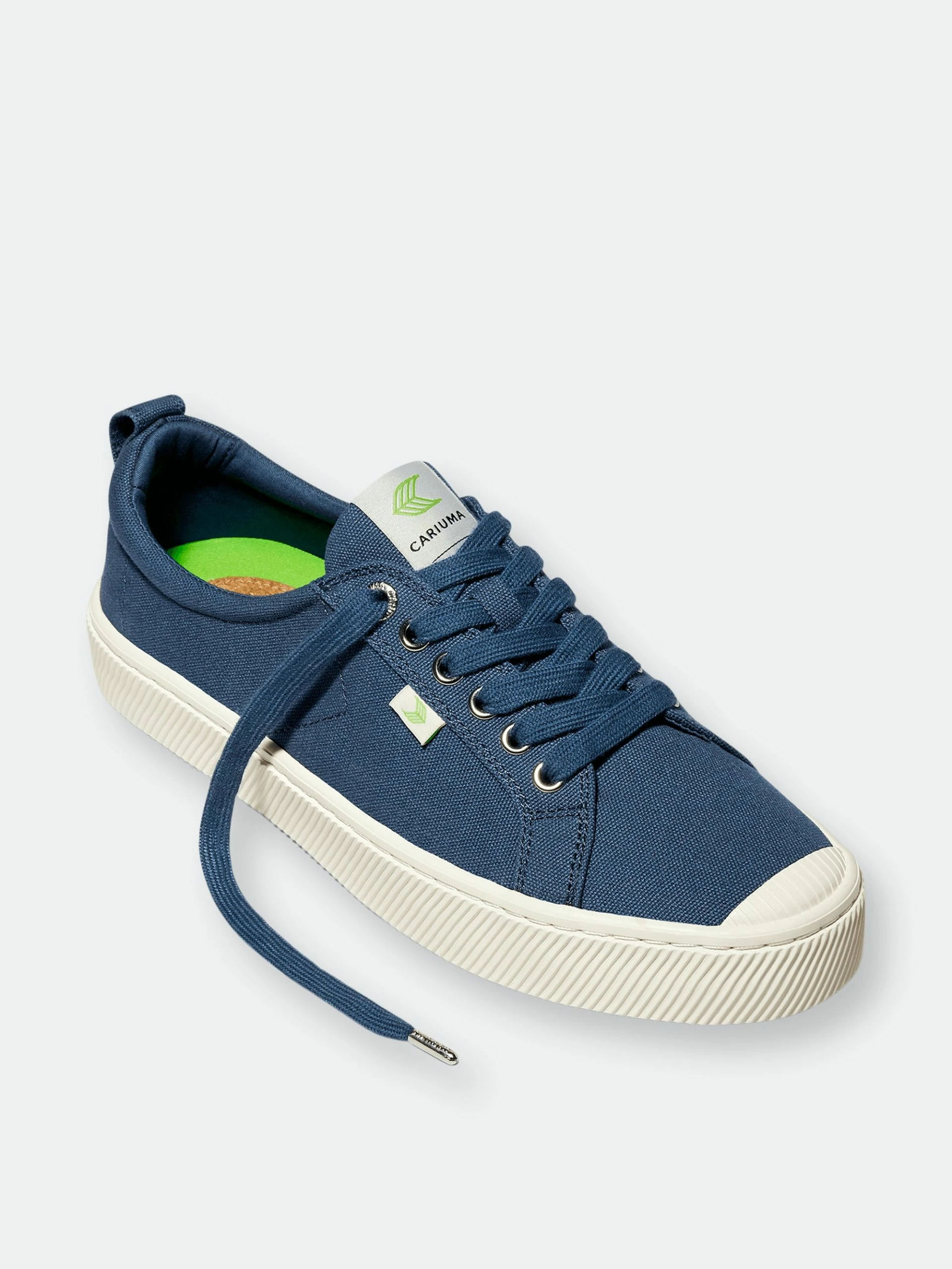 Our much-loved, signature sneaker is the OCA. Crafted from high-end, raw materials, it features lightweight cushion technology, the perfectly-weighted rubber sole, and classic cap-toe design for a crazy-comfy, go-to look.Did you know blue is one of the most elusive colors in nature, often just a reflection or a trick of the eye? Shadow Blue channels the ethereal, illusory nature of our universal favorite color.Handcrafted using a robust organic cotton canvas, the OCA Low Canvas exists at the intersection of functionality and style. With our 100% vegan insoles – made from cork and organic mamona oil – these sneakers ensure optimal comfort and a perfect fit. OCA Low boasts a unique cap toe design and a fully-stitched rubber outsole, for a lightweight yet durable shoe with an extended lifespan.