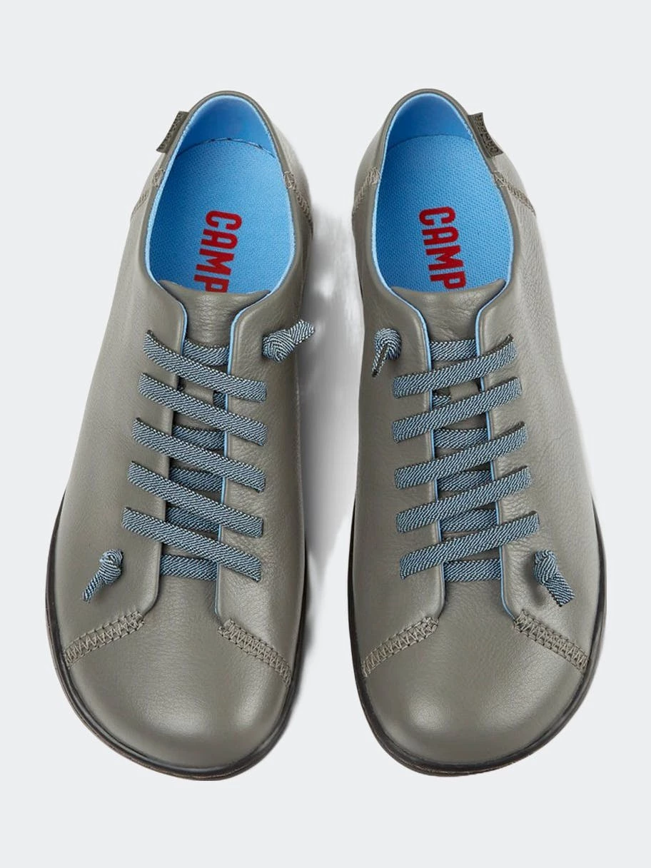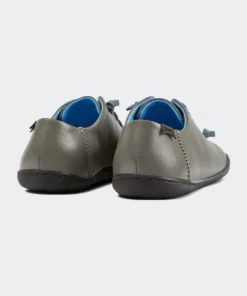 Gray leather women’s shoes with TPU outsoles (20% recycled). A Camper Icon that evolves with every season, Peu offers functional simplicity inspired by walking barefoot. It is 360-degree stitched and built with a Strobel construction technique, guaranteeing unmatched flex and durability under any conditions. Shoes are made with carefully selected, premium materials. The use of the right shoe care products will ensure these styles are protected and will last for a long time.