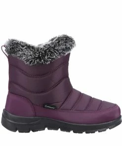 Fleece lined hybrid snow boot with waterproof rubber galosh and side zip for easy use.