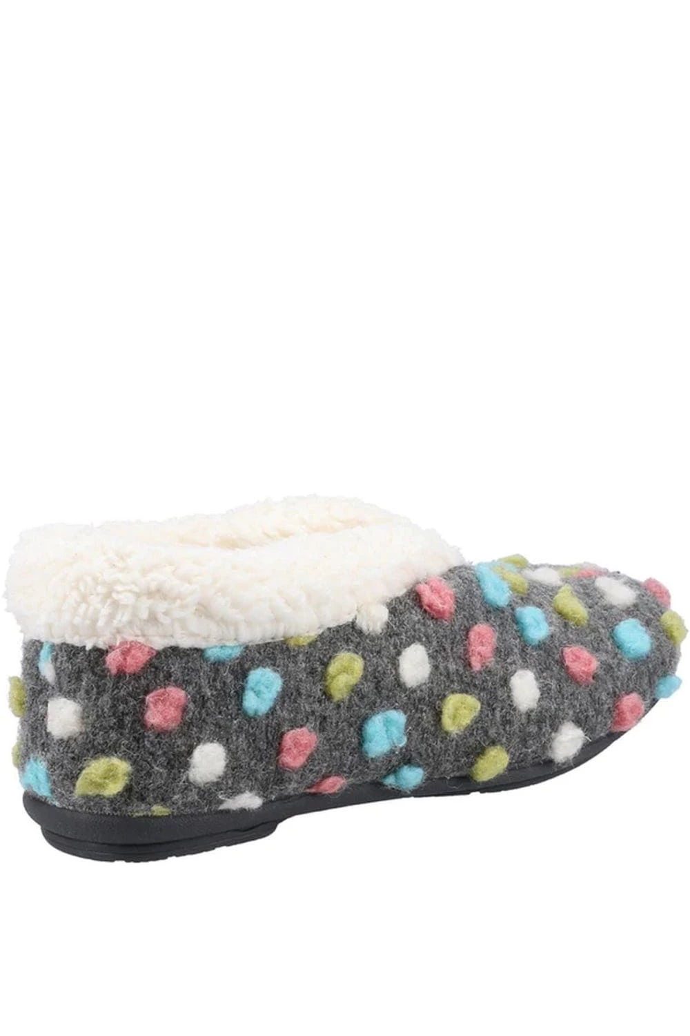 – Outsole: Non marking, vulcanised rubber.- Flat.- Cut: Low cut.- Design: Polka dot.- Toe style: Round.- Fastening: Slip-in.