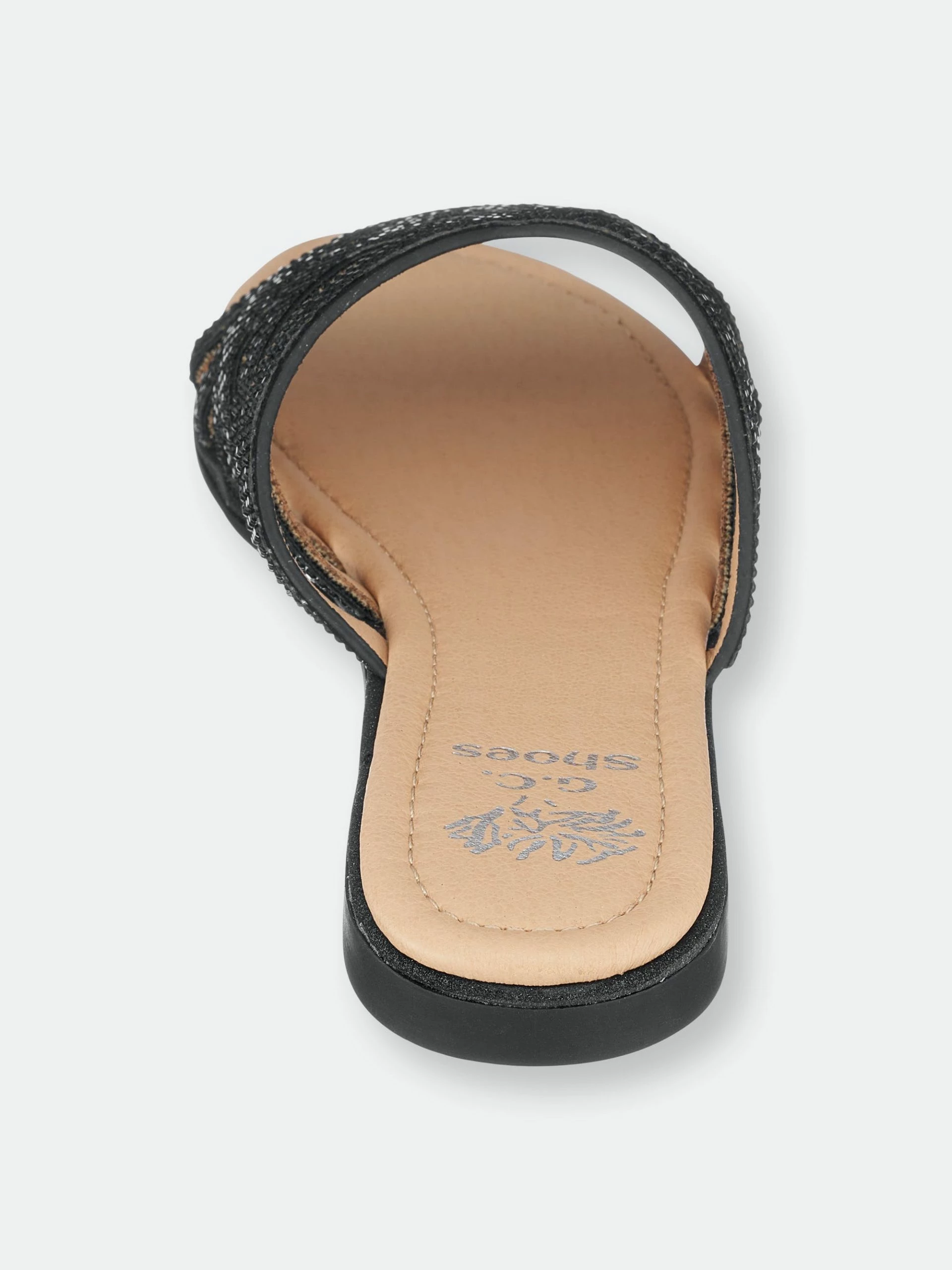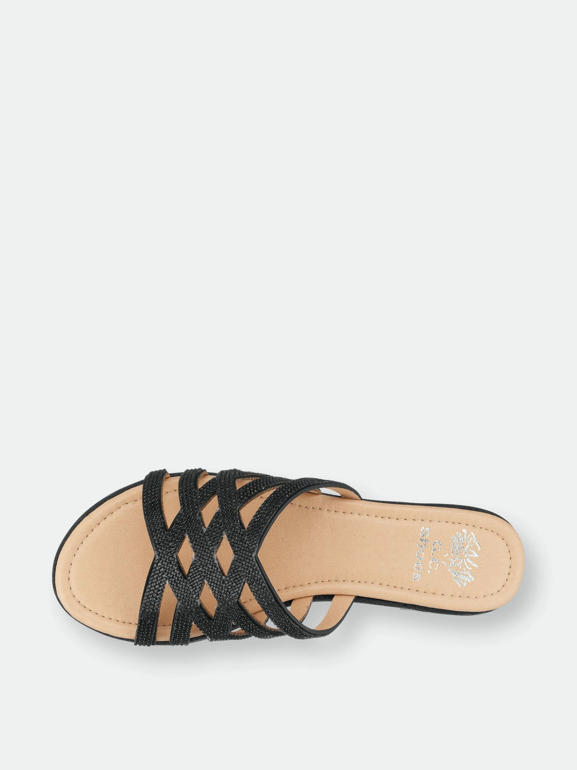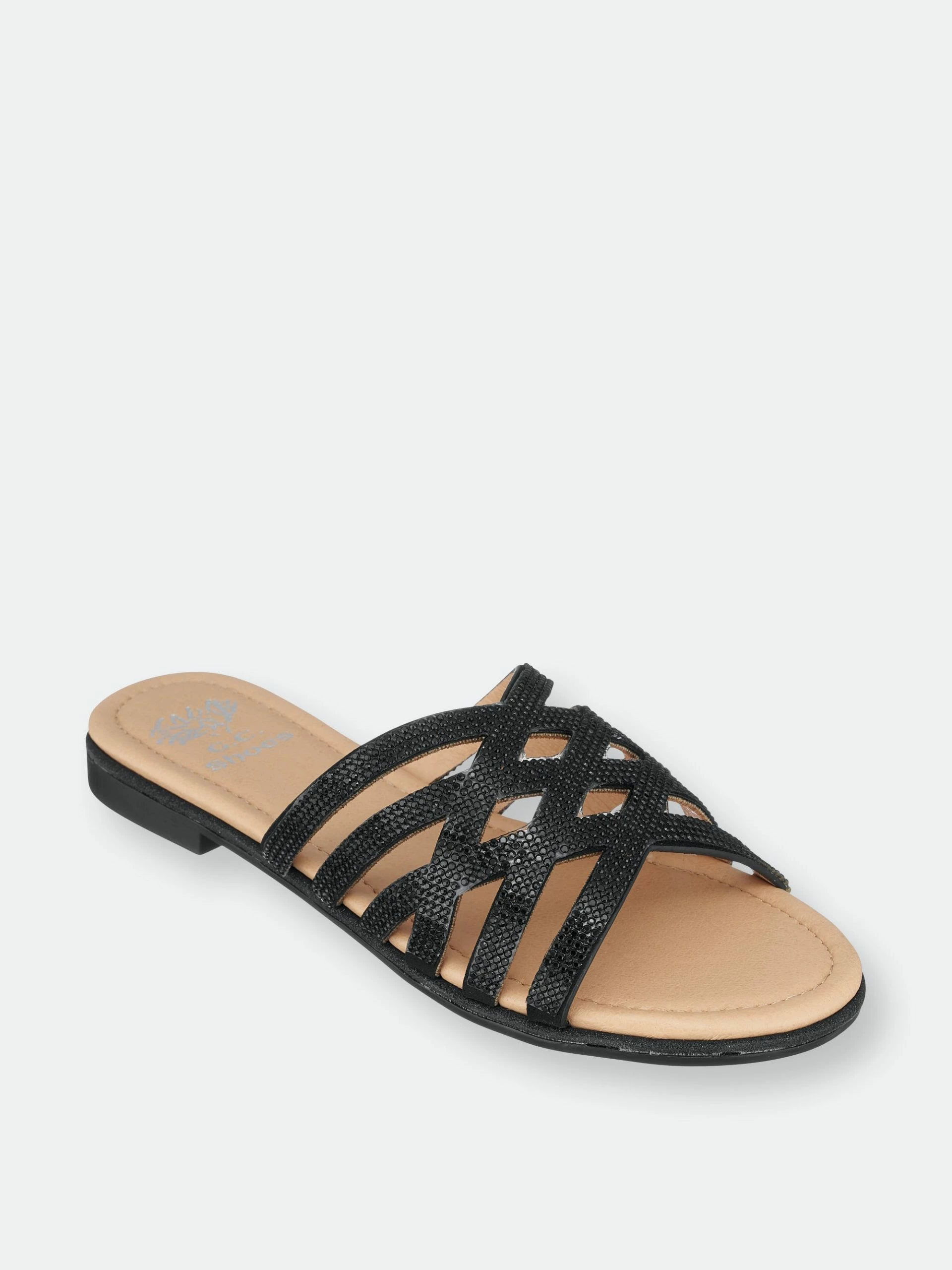 Add some sparkle to your warm weather wardrobe with the Sage sandal from GC Shoes. This rhinestone-embellished pair features a round off toe for a modern finish.