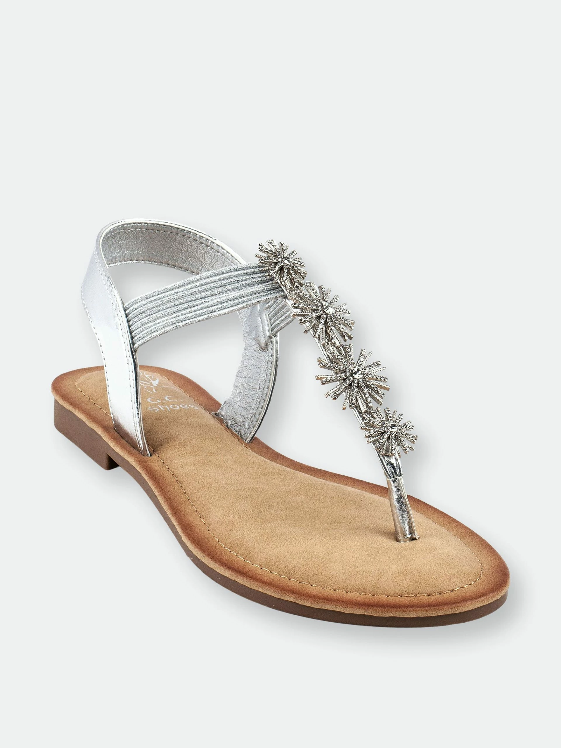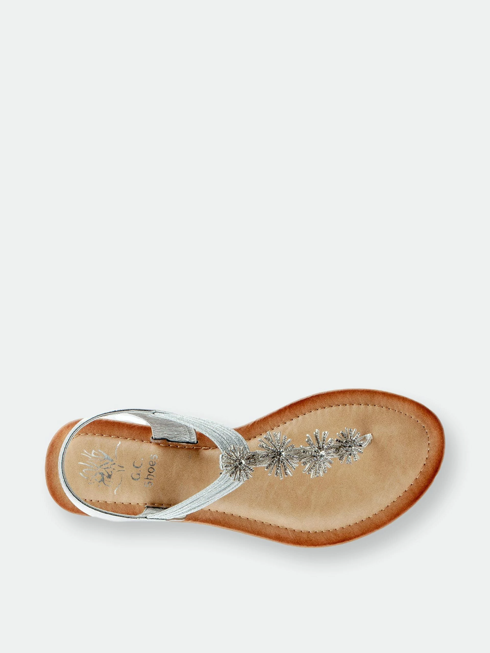 Embrace warm weather days with the Carlie sandal from GC Shoes. Boasting a scalloped strap design and sparkling rhinestones, this thong sandal is the perfect choice for a date night or for dressing up casual looks.