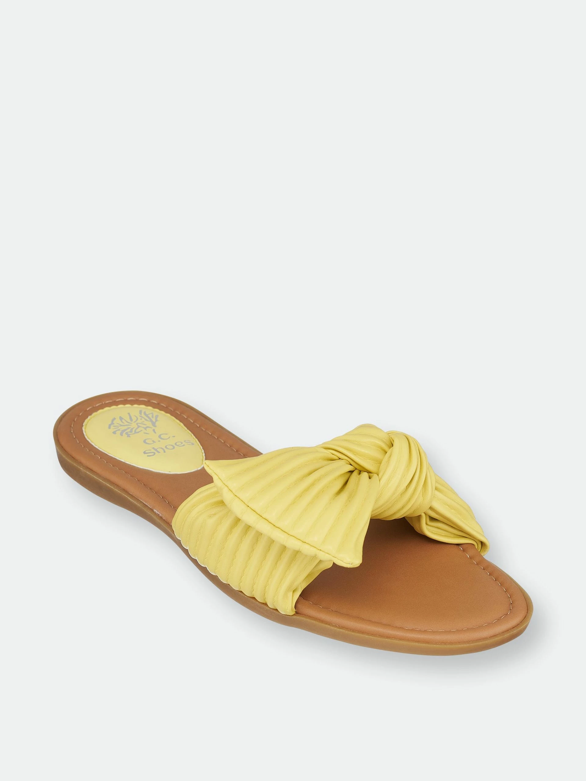 The Danni slide sandal from GC Shoes is a minimal design with just the right amount of elegance. Made of fabric, this slide features one band with knot detail that adds to the visual interest.