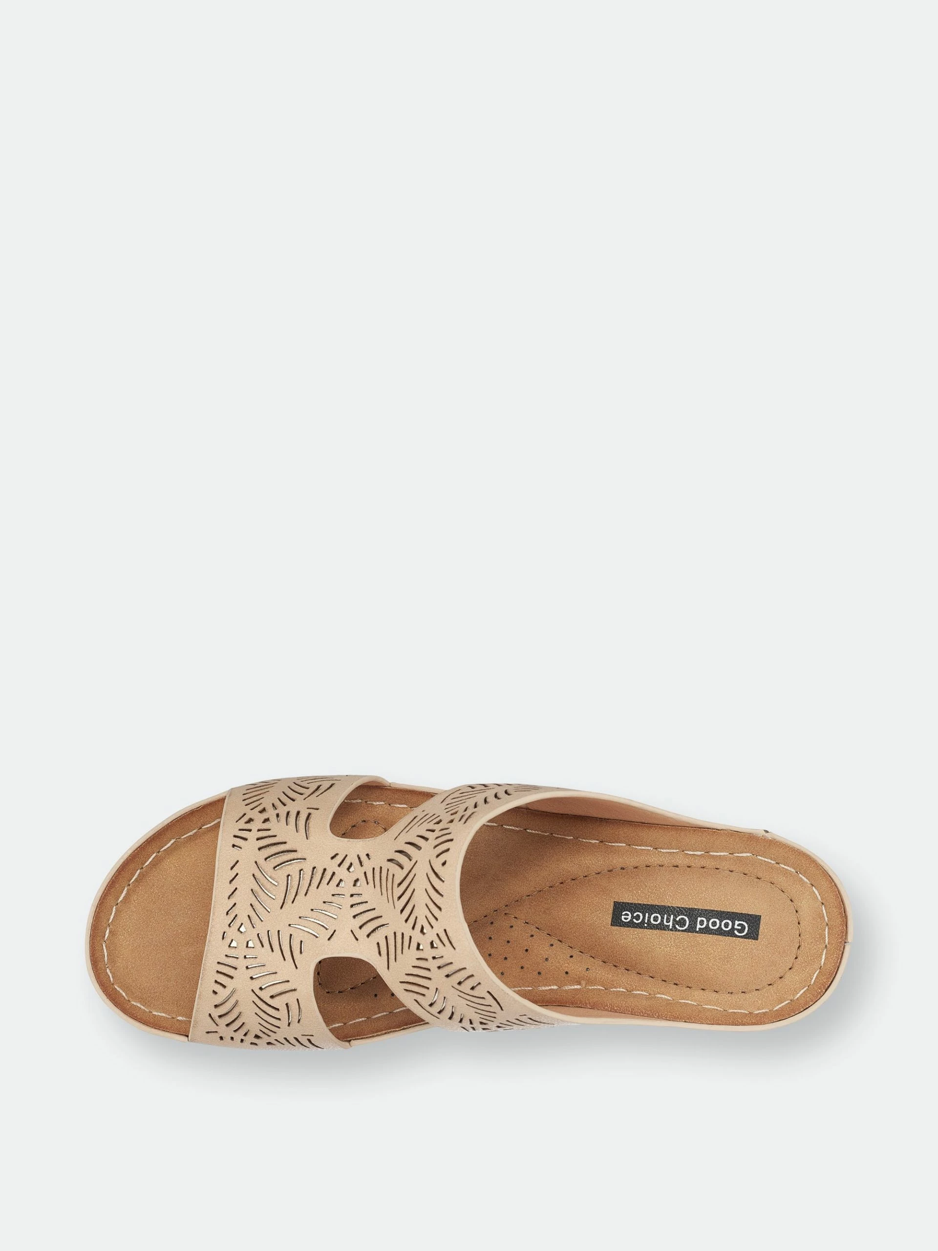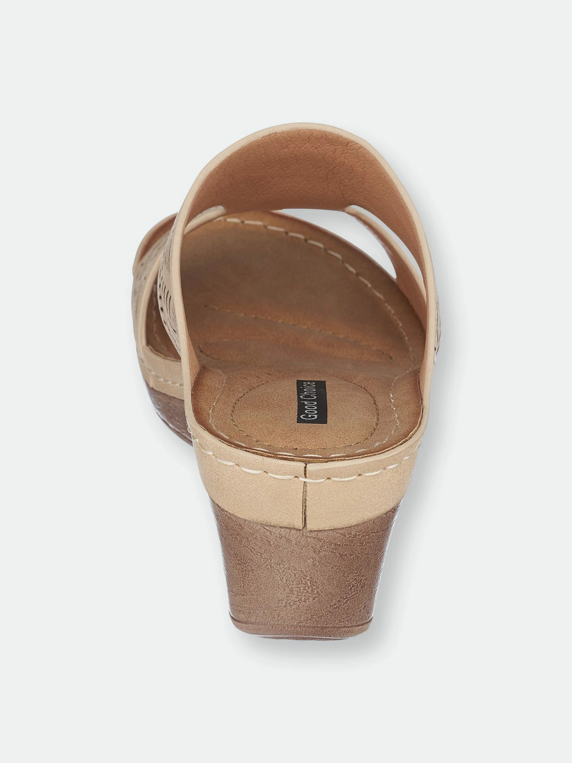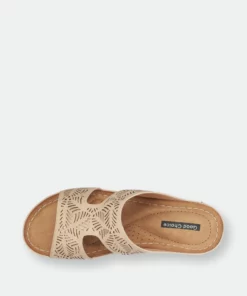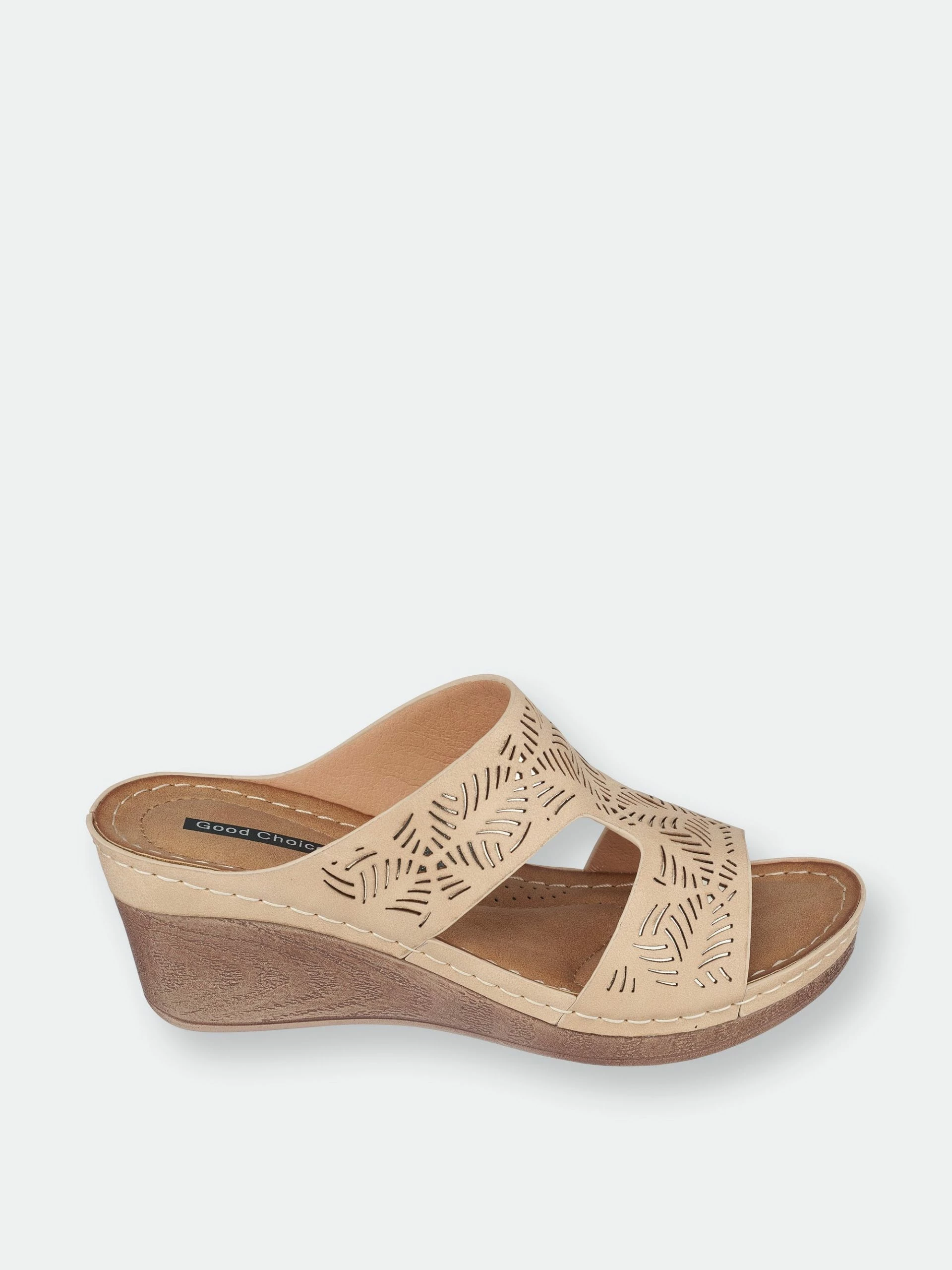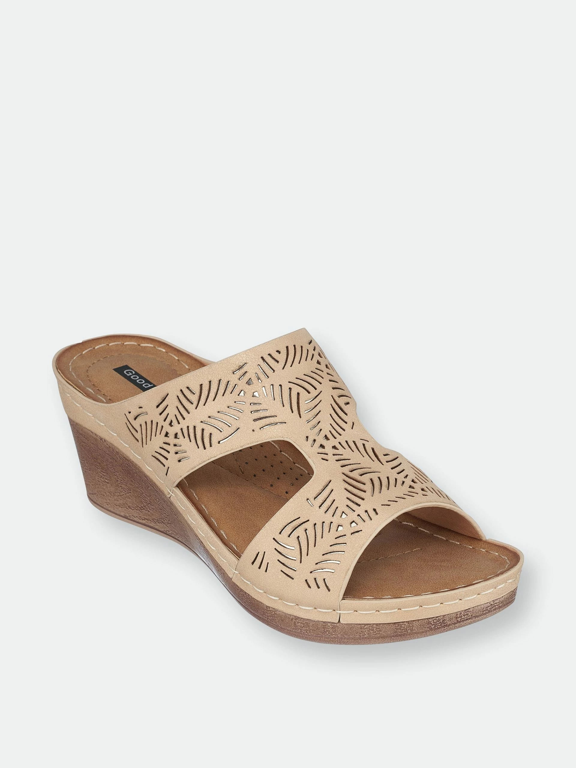 Add a touch of elegance to any look with the Drift wedge sandal from GC Shoes. This lovely pair flaunts perforated upper t-strap detail and a cushioned footbed for stylish comfort.