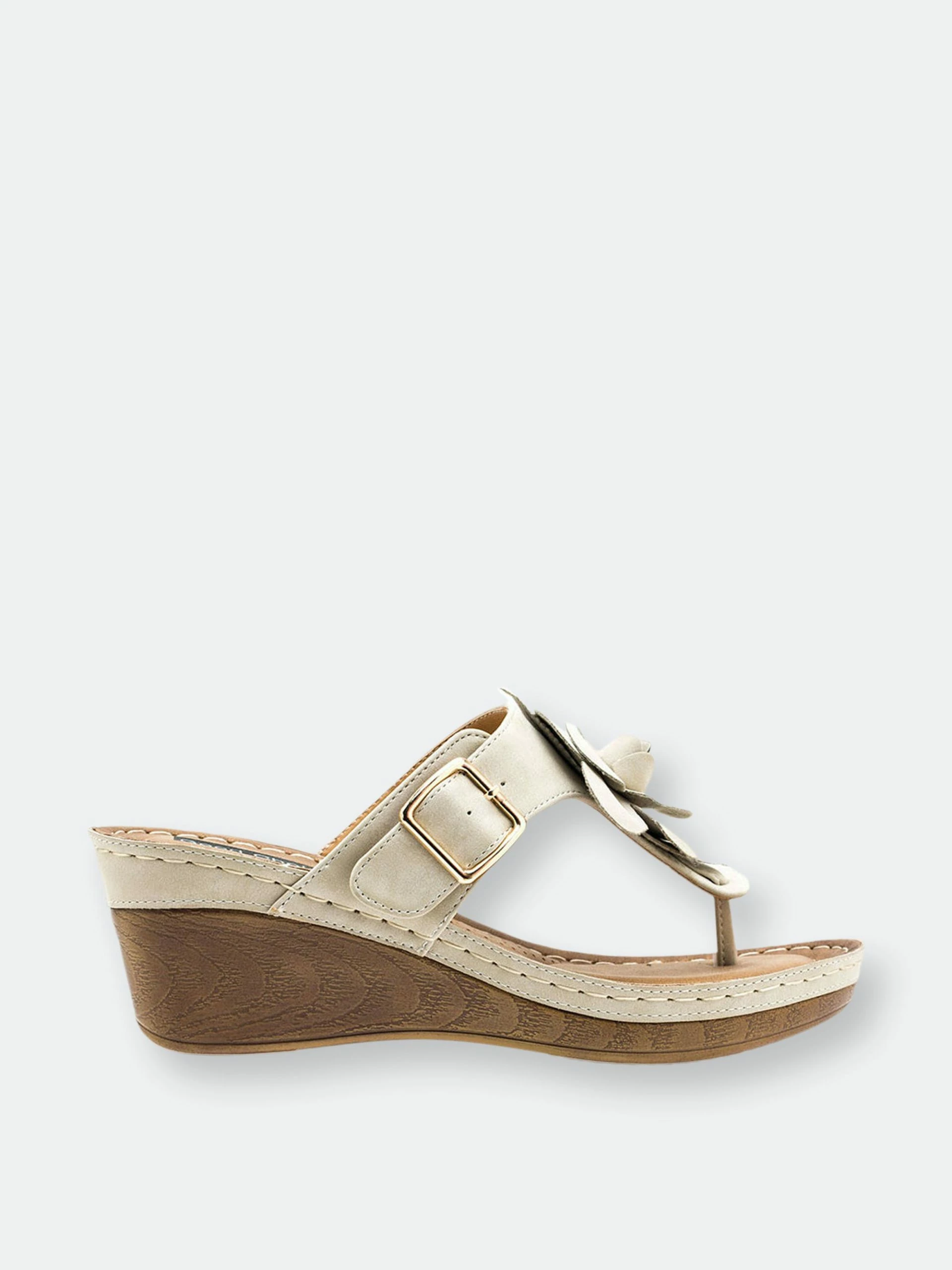 Bring out your nature-loving style with the floral sandal from GC Shoes. These wedges have a cushioned foot bed for long lasting comfort and floral appliques for a feminine finish.