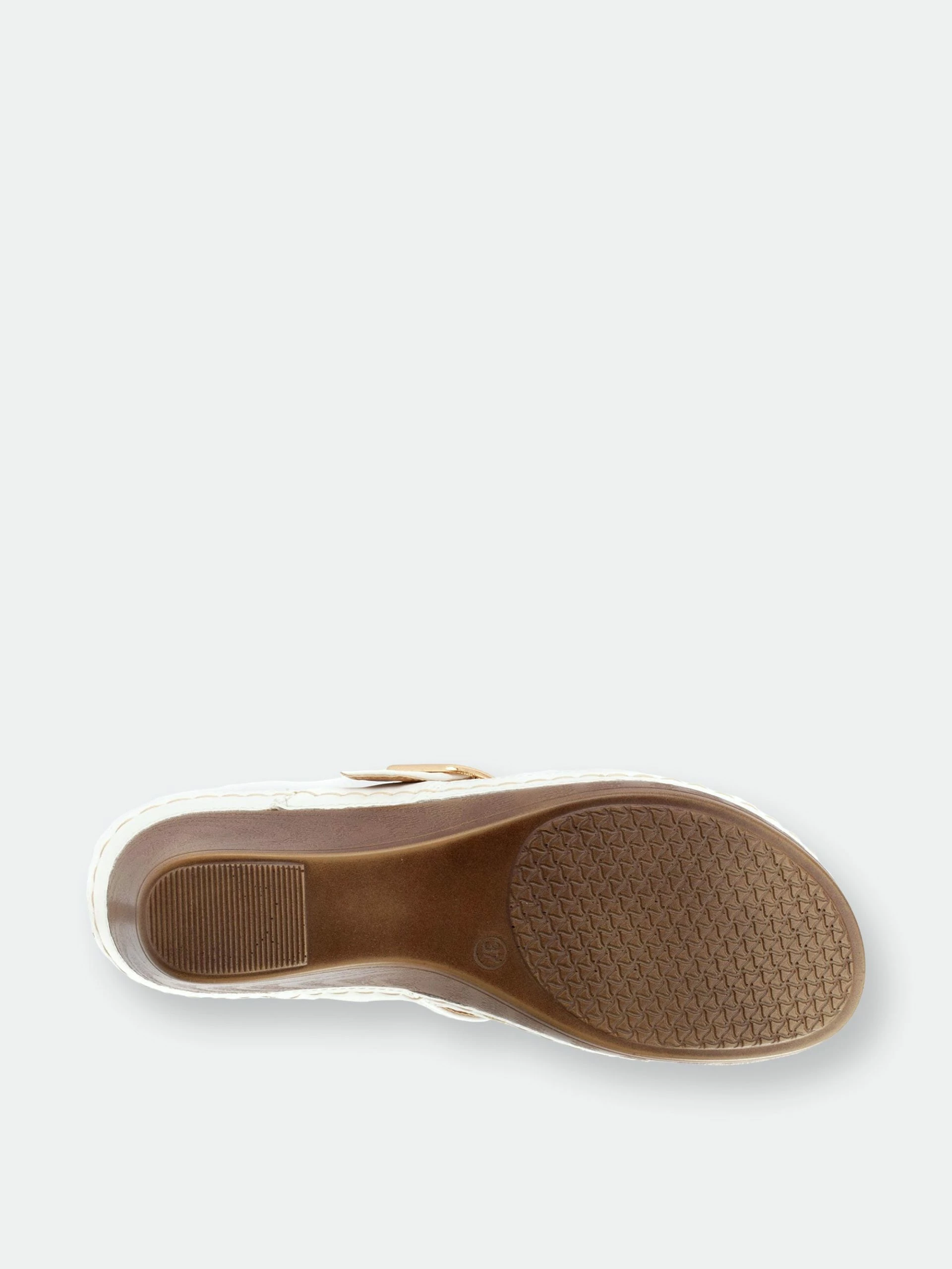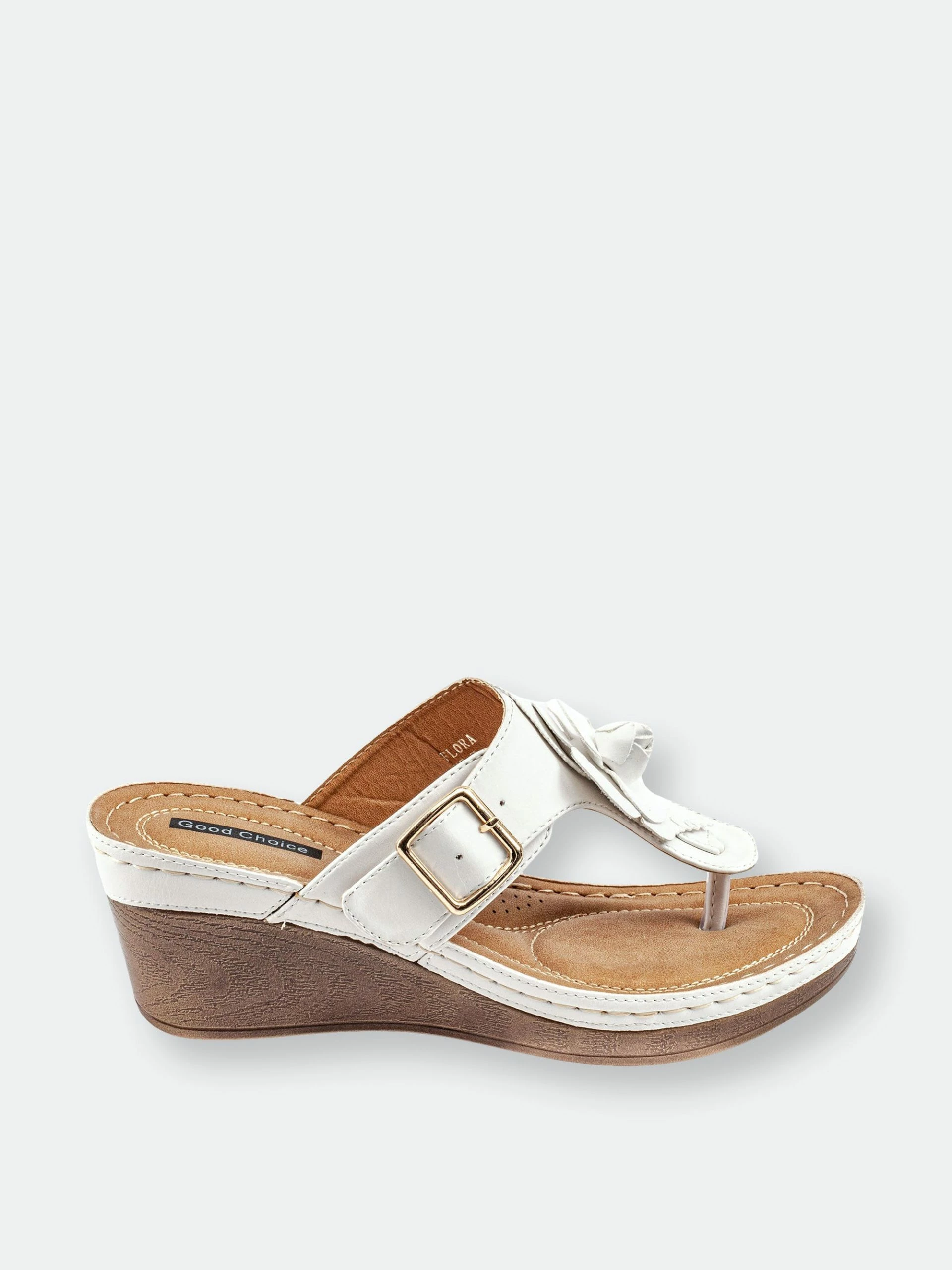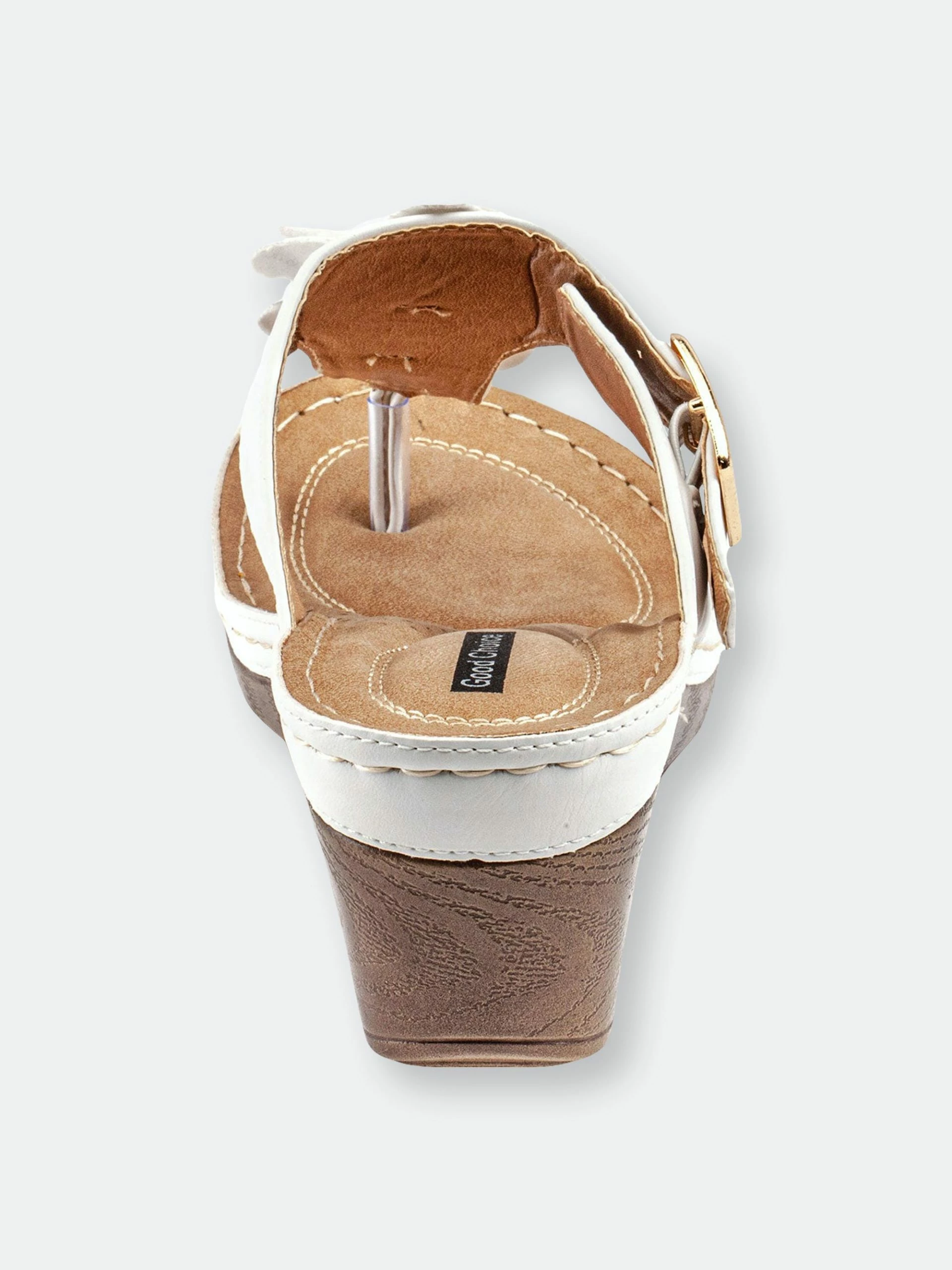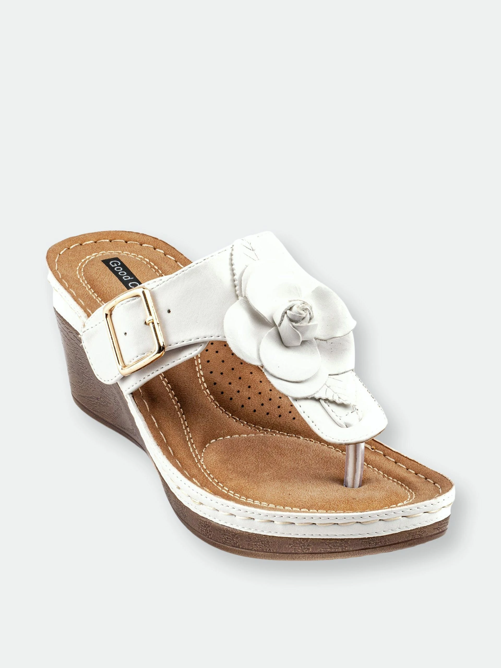 Bring out your nature-loving style with the floral sandal from GC Shoes. These wedges have a cushioned foot bed for long lasting comfort and floral appliques for a feminine finish.
