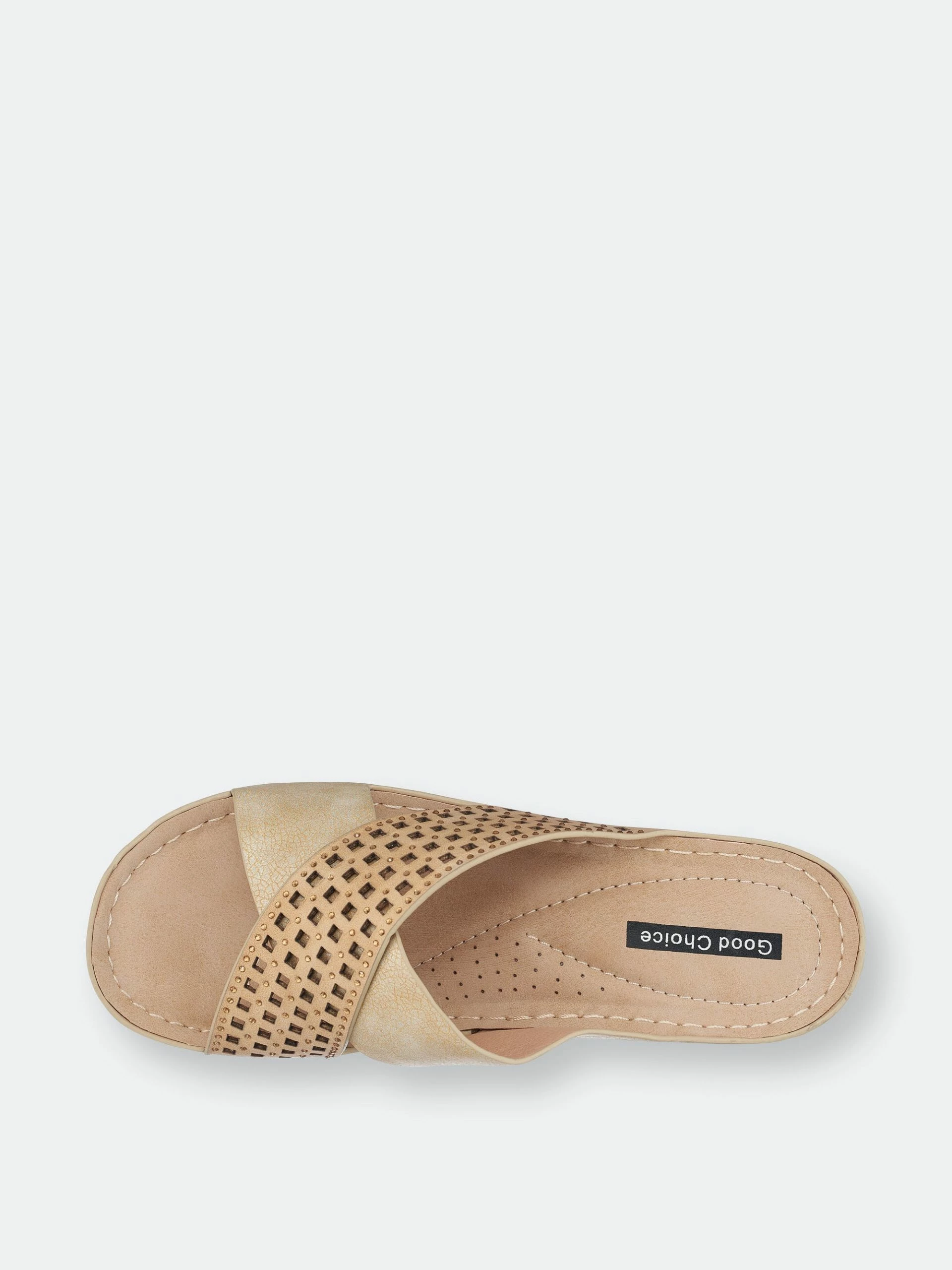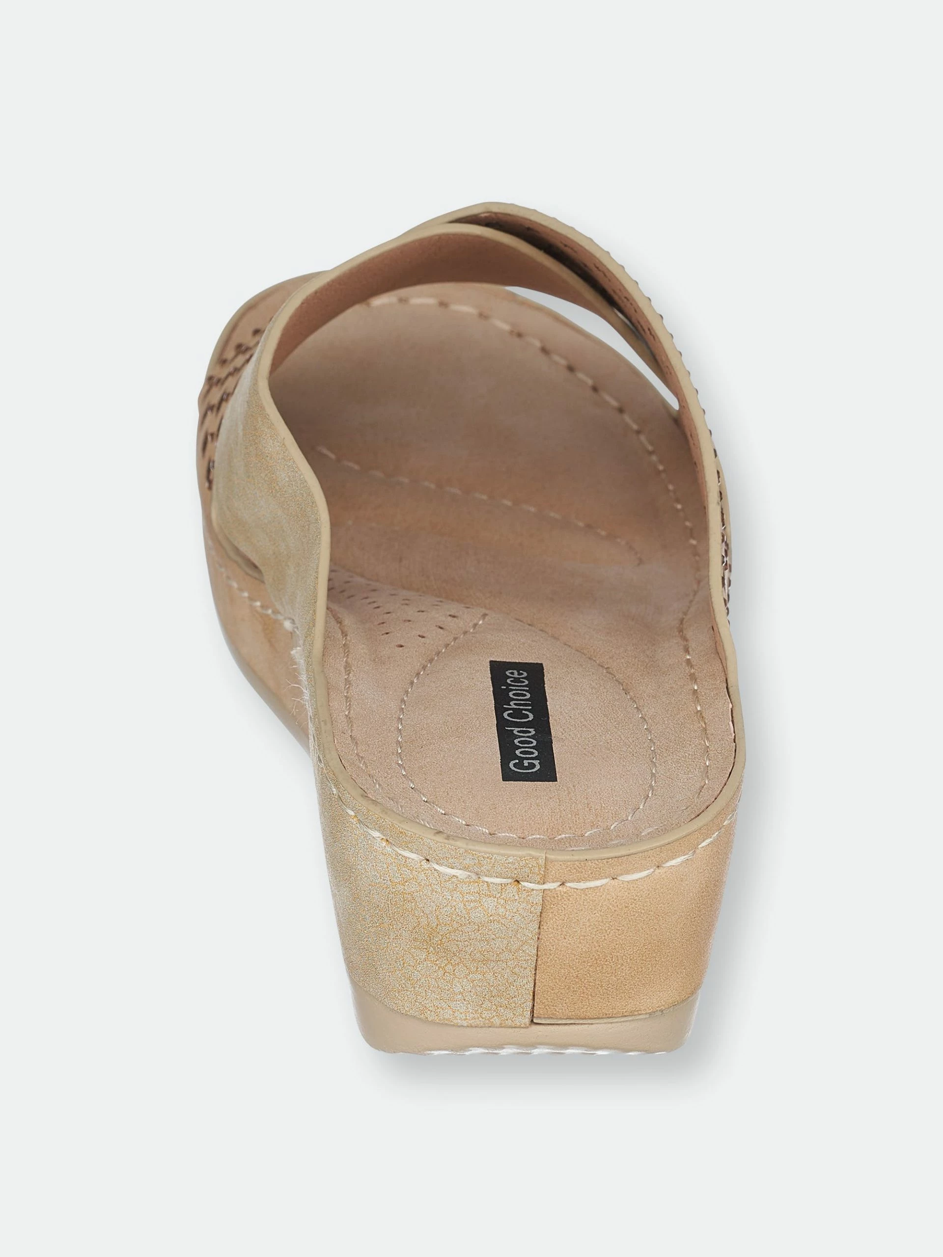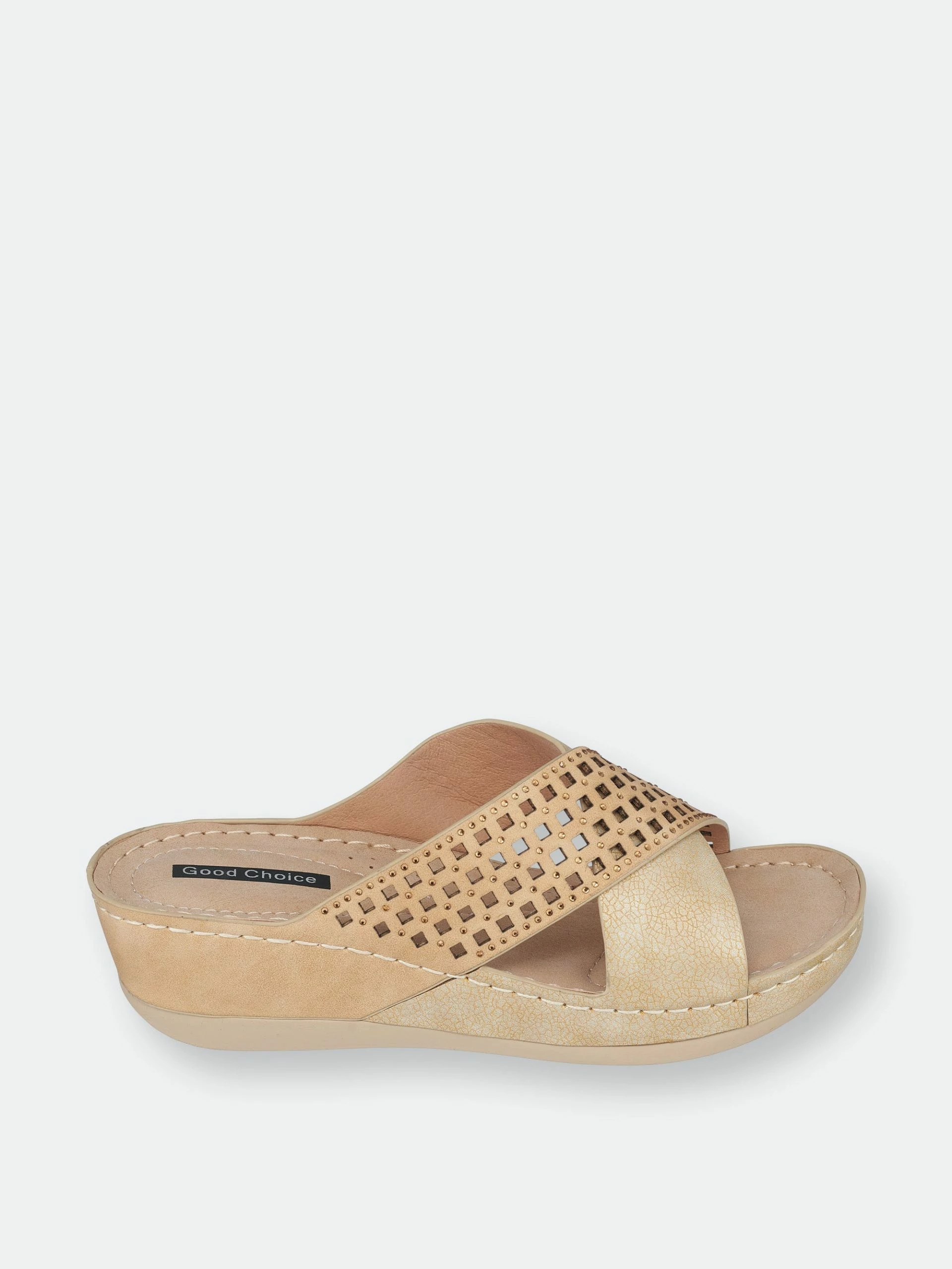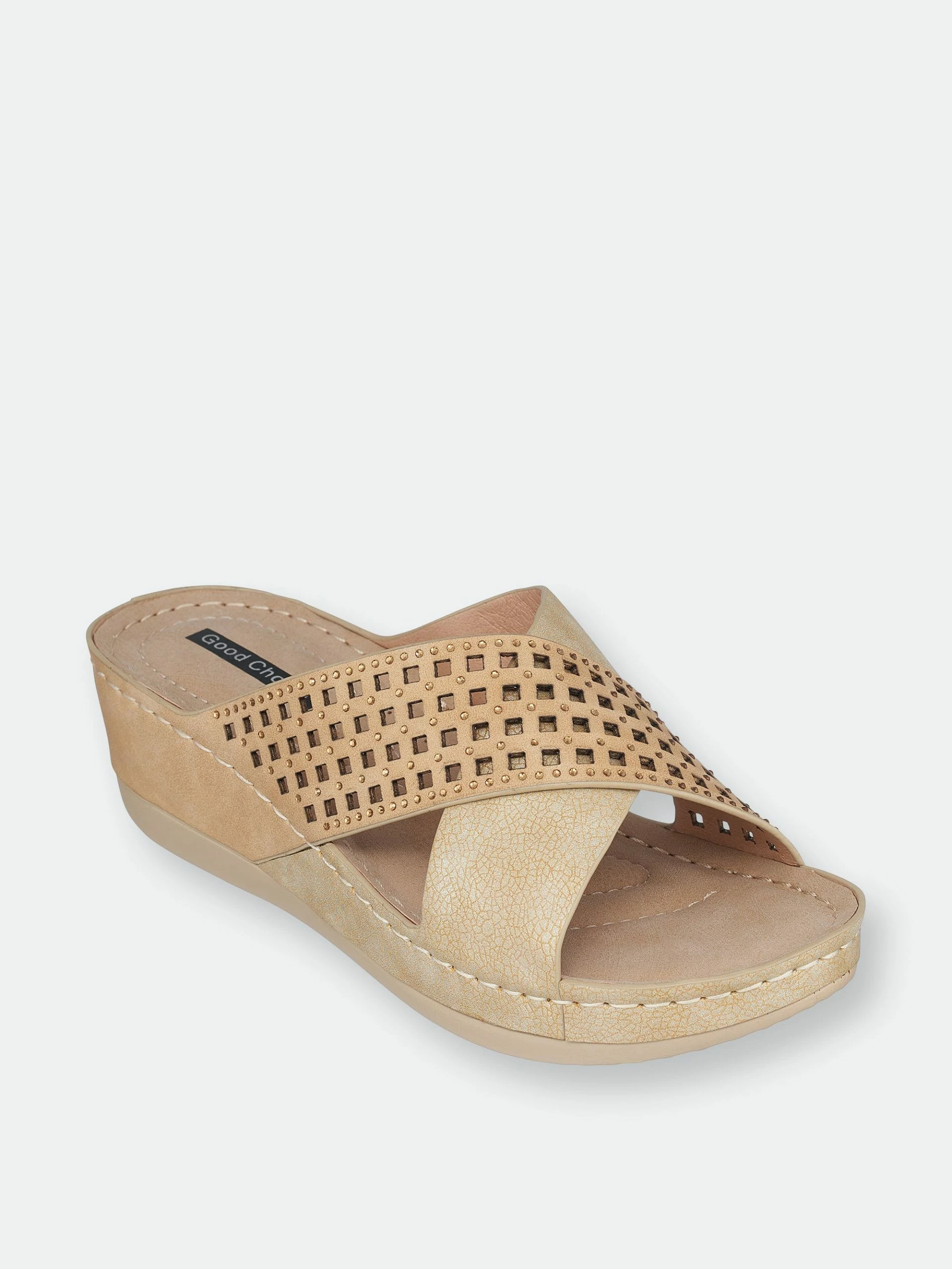 Flaunt your chic looks in the Isabella slip on platform by GC Shoess. Laser-cut perforations and rhinestone accents impart a modern look, while the cushiony footbed makes this sandal an excellent choice for this summer.