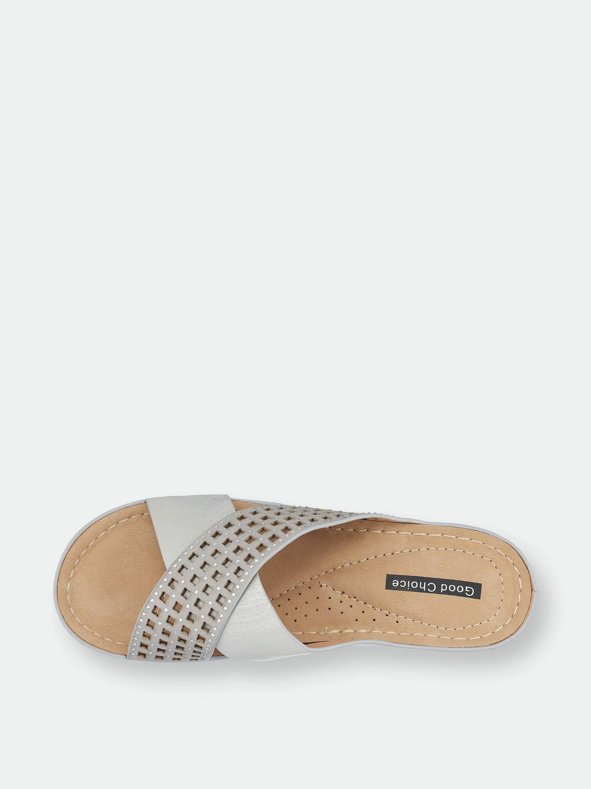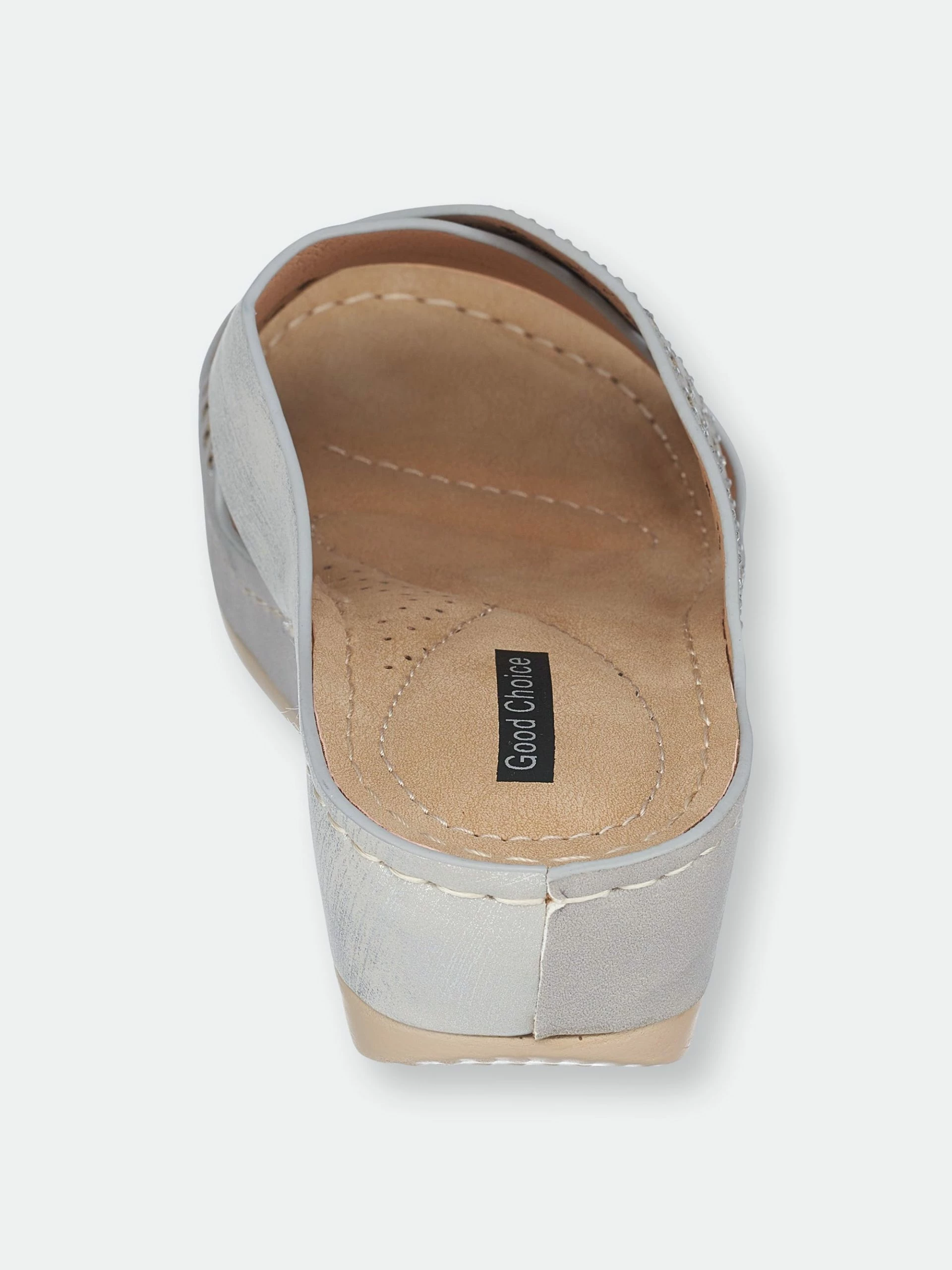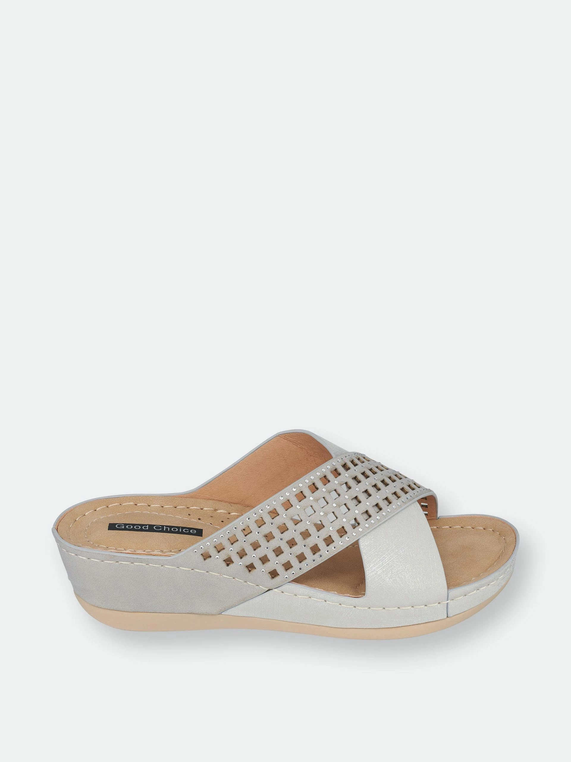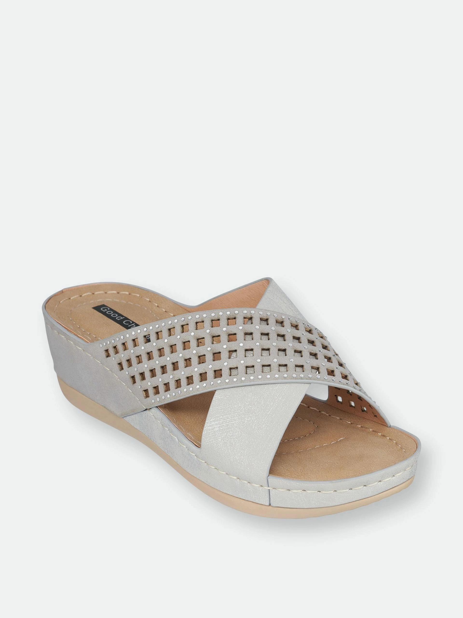 Flaunt your chic looks in the Isabella slip on platform by GC Shoess. Laser-cut perforations and rhinestone accents impart a modern look, while the cushiony footbed makes this sandal an excellent choice for this summer.