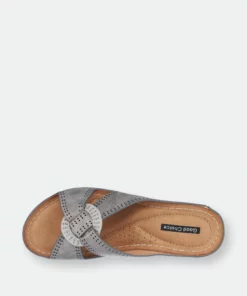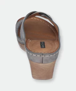 The Gisele platform slide wedge sandal from GC Shoes beautifully complements your dressy summer attires. The platform raises this sandal, while the textured straps enhance the visual aesthetic.