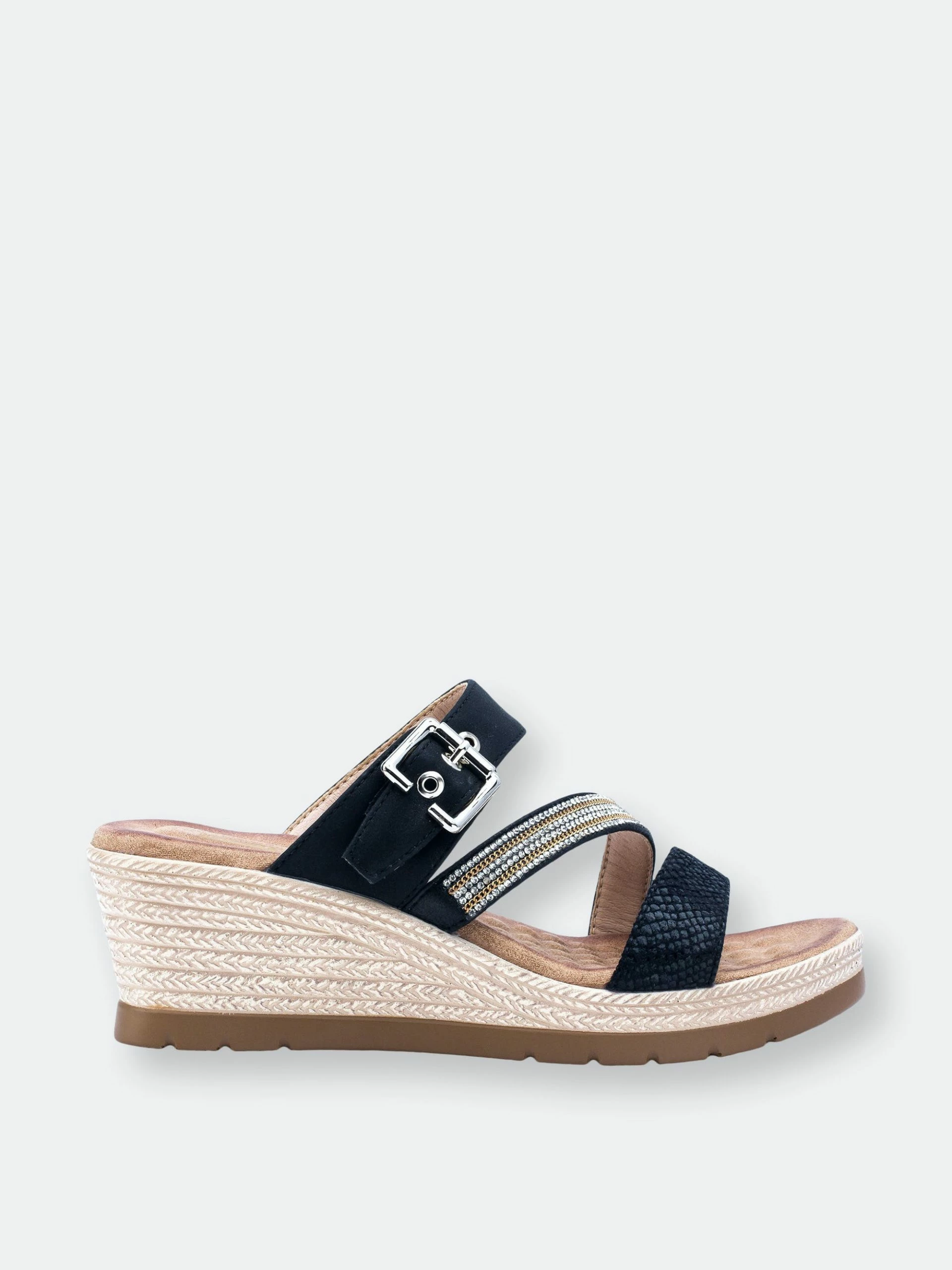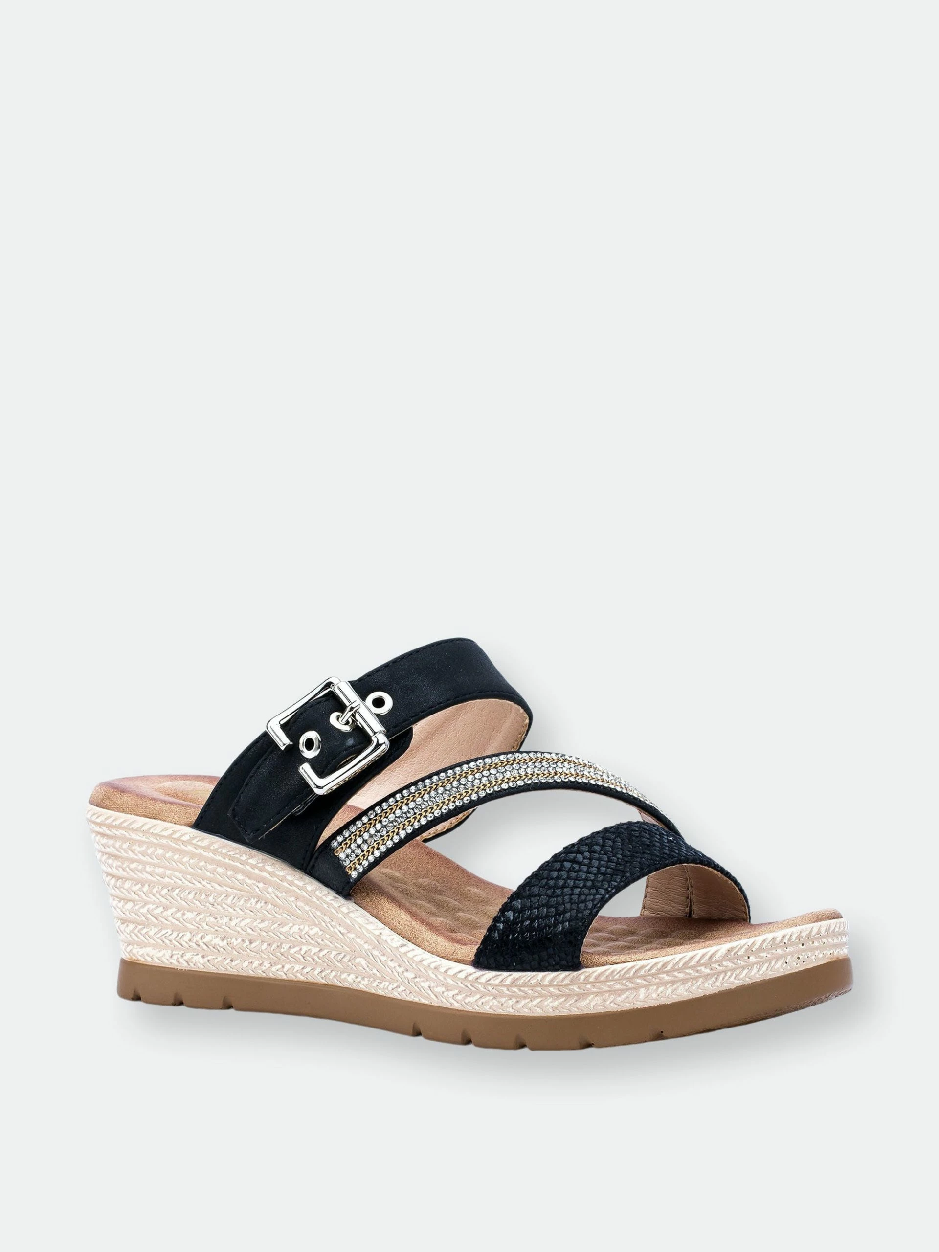 The Monica wedge sandal from GC Shoes are perfect for warm-weather days. With embossed detailing and dainty rhinestones, these wedges exude modern appeal.