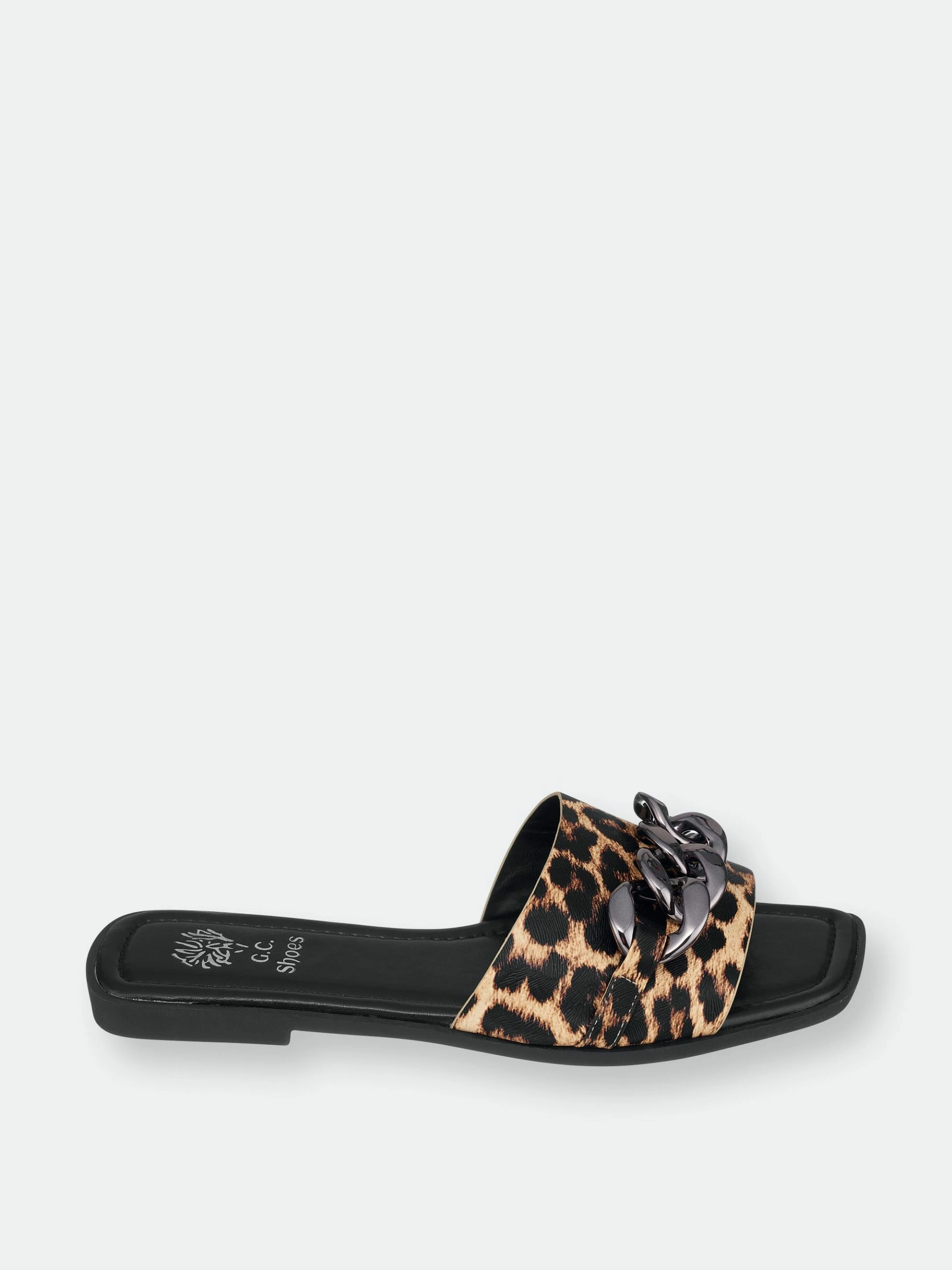 Look summer friendly in the Rina slide sandal fromGC Shoes. The one-band upper is accented with oversized gleaming chain for a glamorous touch.