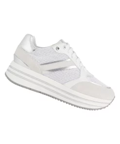 – Upper: Mesh, Suede, Synthetic, Textile.- Lining Material: 60% Textile, 40% Synthetic.- Insole: Leather, Removable.- Outsole: Rubber, Traction Grip.- 6 Eyelets.- Fabric Technology: Breathable, Lightweight, Waterproof Membrane.- Antibacterial Footbed, Patented Support System, Shock Absorbing Midsole, Temperature Regulation.- Flat Heel.- Heel Height (Imperial): 1.77in.- Cut: Low Cut.- Design: Glitter Panel, Logo.- Toe Style: Round.- Fastening: Lace Up..- Gender: Women