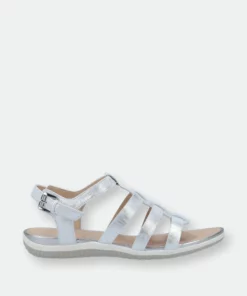 – Upper: Leather.- Lining: Synthetic.- Insole Material: Synthetic.- Outsole: Rubber.- Sole Features: Lightweight, Sturdy Grip.- Fastening: Buckle.- Fabric Technology: Breathable, Jontex Waterproof Membrane, Quick Dry.- Perforated Footbed, Reflective Detail.- Flat Heel.- Cut: Low Cut.- Design: Metallic.- Toe Style: Open..- Gender: Women