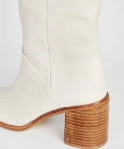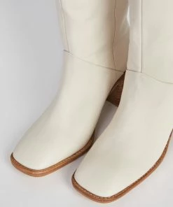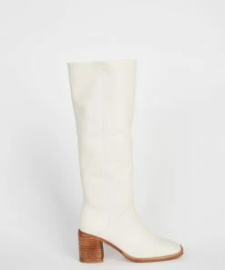 A tall boot that is different. We love the combination of the square two with the straight shaft, wear it bunched down, or tall and straight.