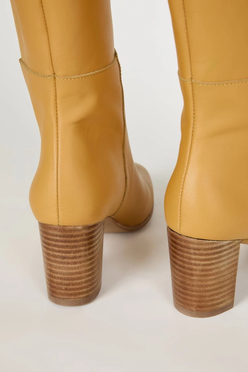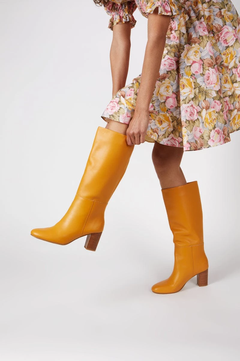 Tall boot with just a hint of 70’s vibes, made totally contemporary in fresh colors and textures.