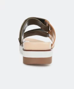 The Ashanti sandal from Journee Collection is the perfect take on a bold look while keeping your confidence up. Their luxe vegan leather, double strap design, slide style, open round toe, and adjustable hook loop offer ease and comfort that perfectly pairs with all your favorite summer looks. As a bonus, their slip-on closure will keep your feet comfortable all day long.This easy slide is the 90s throwback that only gets better with time.