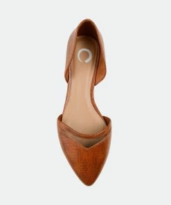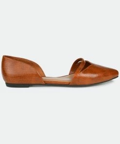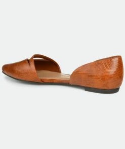 The Braely flat is designed with a clever lizard inspired texture and sleek vegan leather. This pointed-toe d’Orsay silhouette is made to spruce up your everyday wardrobe with a sweetheart shaped detail. A dreamy cushioned footbed completes this must-have look by Journee Collection.FlatHeel Type: Sole Platform Height:Flat-inchShoe Width: MediumClosure Type: Slip-onToe Style: PointedLining: Faux LeatherUpper Material: Vegan LeatherOutersole Material: RubberFootbed: CushionedAll measurements are approximate and were taken using a size 6. Please note measurements may vary slightly by size.