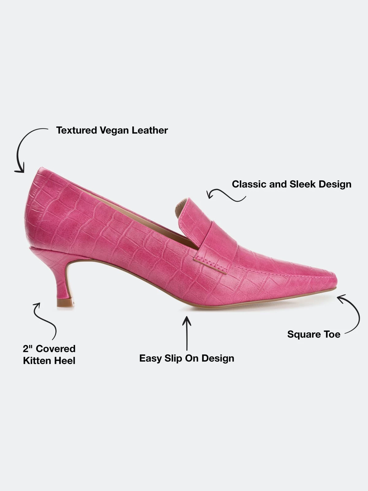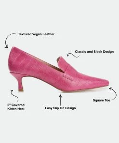 The Celina loafer from Journee Collection is made to match and blend with your sharpest outfits. With a square toe, strap accent, and kitten heel, these slip-on heels will always have you looking your best. A 4 mm Tru Comfort Foam insole and soft vegan leather make them fit like a dream. At Journee Collection, this pump styles will let you go from a fun night out with the girls to kicking back and relaxing at the end of the night without any trouble.
