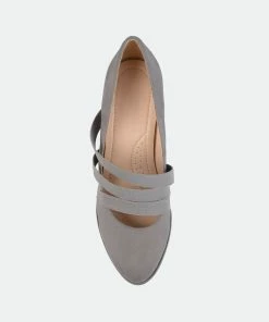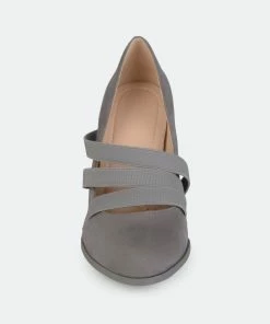 A vintage inspired design is highlighted on the elastic strap pumps by Journee Collection. These pumps have soft faux suede uppers and classic round with a triple elastic strap design on the vamps. Comfort insoles create a comfort-sole footbed style.Heel Height:2 3/4-inchHeel Type: Block Heel Platform Height:1/2-inchShoe Width: MediumClosure Type: Pull-onToe Style: RoundLining: Faux LeatherUpper Material: Faux SuedeOutersole Material: Man-madeFootbed: ComfortAll measurements are approximate and were taken using a size 6. Please note measurements may vary slightly by size.