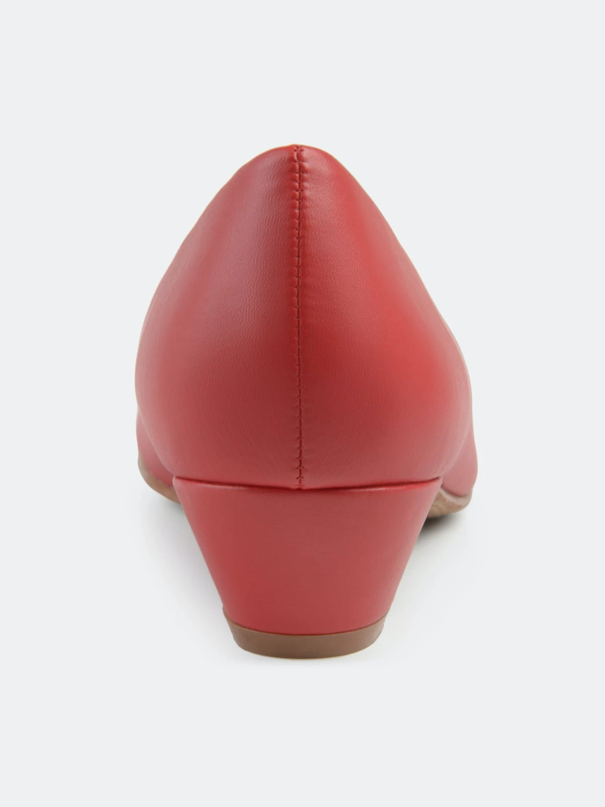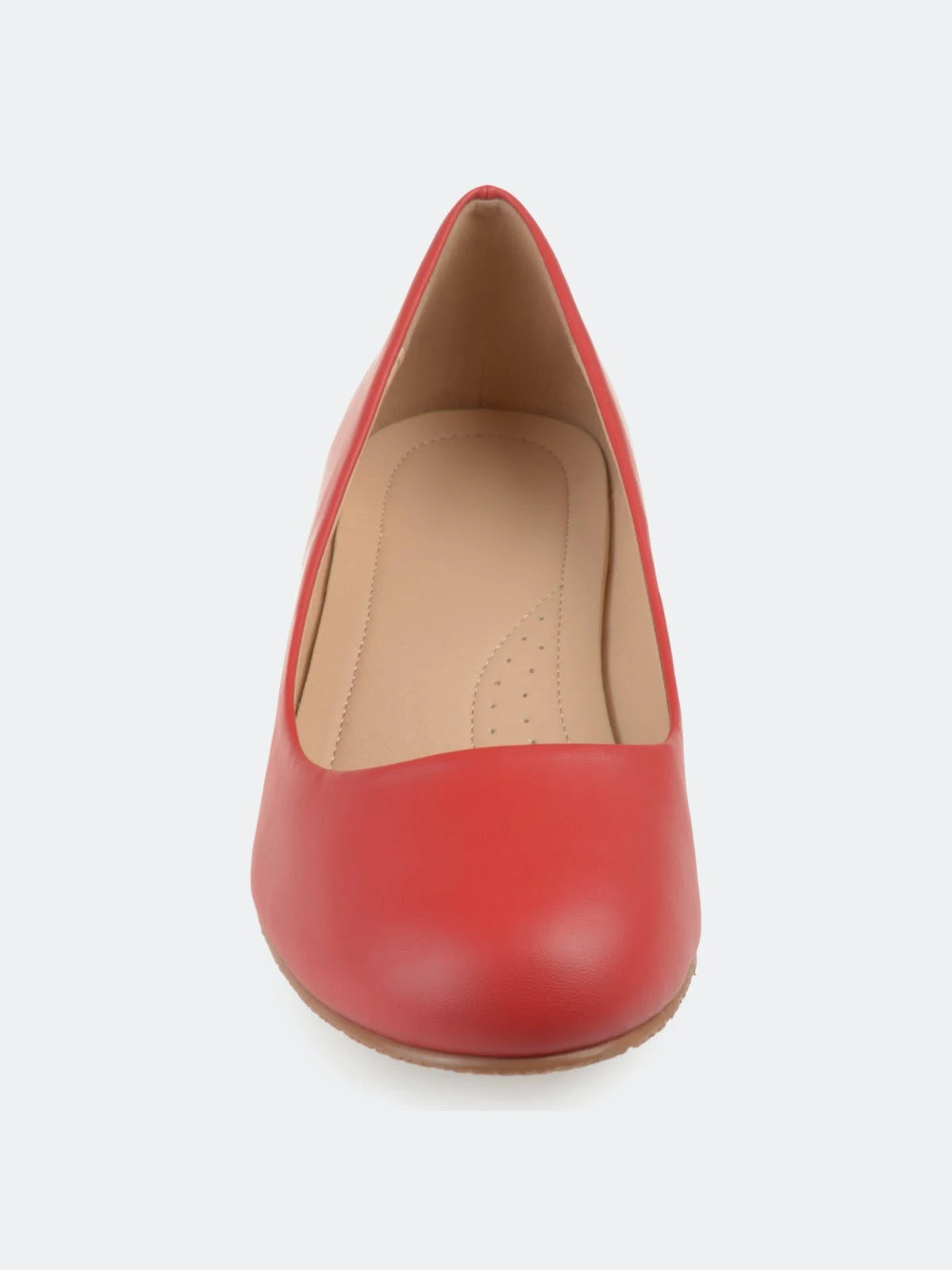 Step into sophisticated style when you wear these faux leather pumps from Journee Collection. These wear-anywhere heels are constructed out of faux leather and feature a comfort-sole footbed designHeel Height:1 1/2-inchHeel Type: Kitten Heel Platform Height:1/2-inchShoe Width: MediumClosure Type: Slip-onToe Style: RoundLining: Faux LeatherUpper Material: Faux LeatherOutersole Material: Faux Leather over SyntheticFootbed: ComfortAll measurements are approximate and were taken using a size 6. Please note measurements may vary slightly by size.