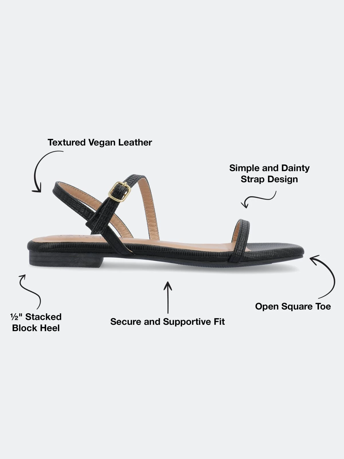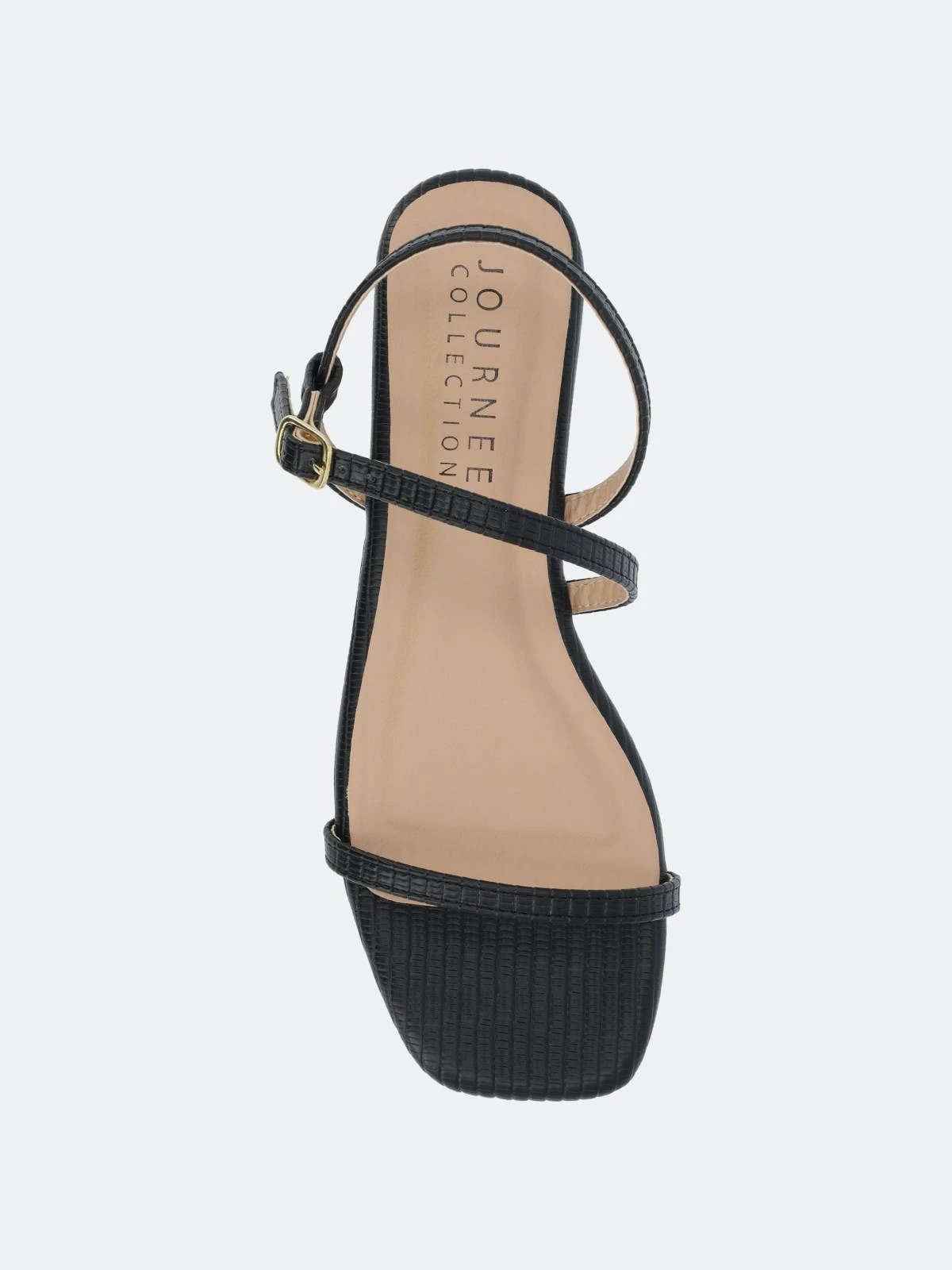 The Crishell block heeled sandals from Journee Collection will be the perfect fit for everything from a nice night out to dinner to your upcoming vacation. Keep your look snatched with their luxe vegan leather, textured material, faux lizard detail, sling-back crossover strap detail, and open square toe. Their slip-on closure will be perfect for when you want to slip them off.