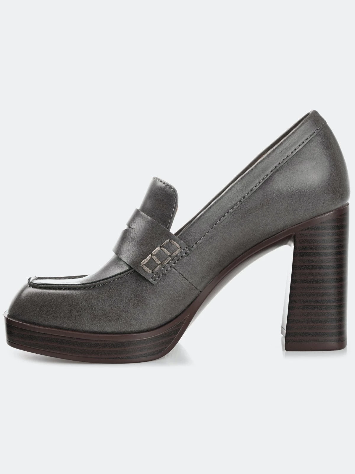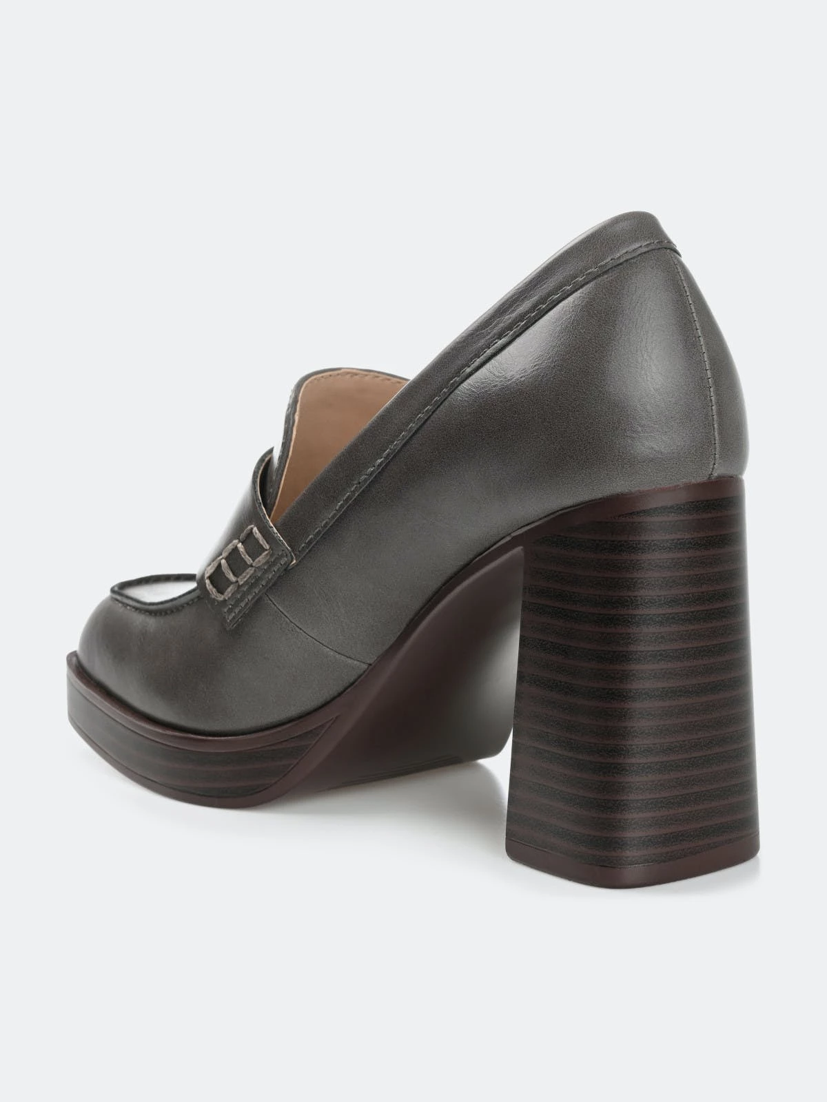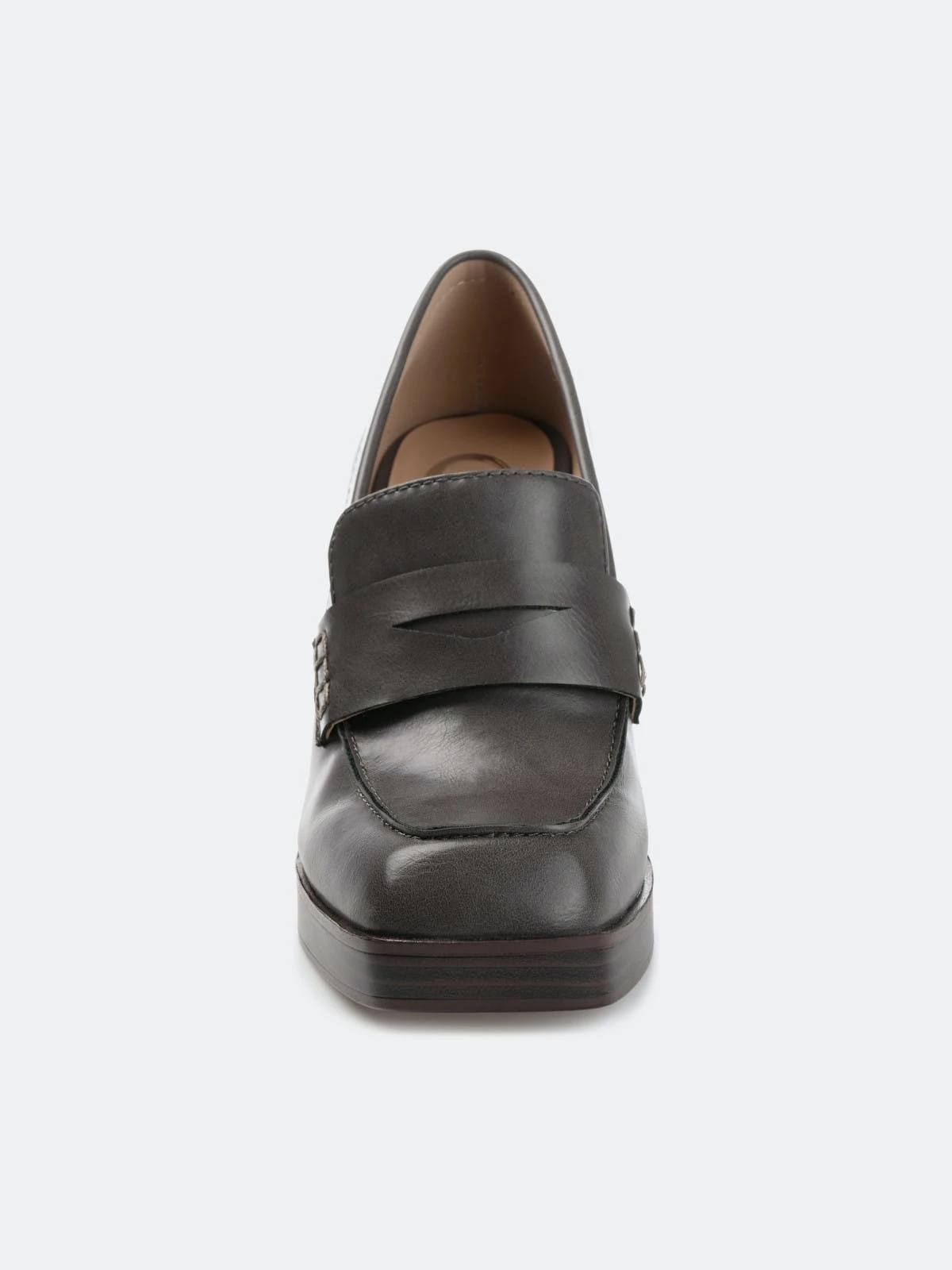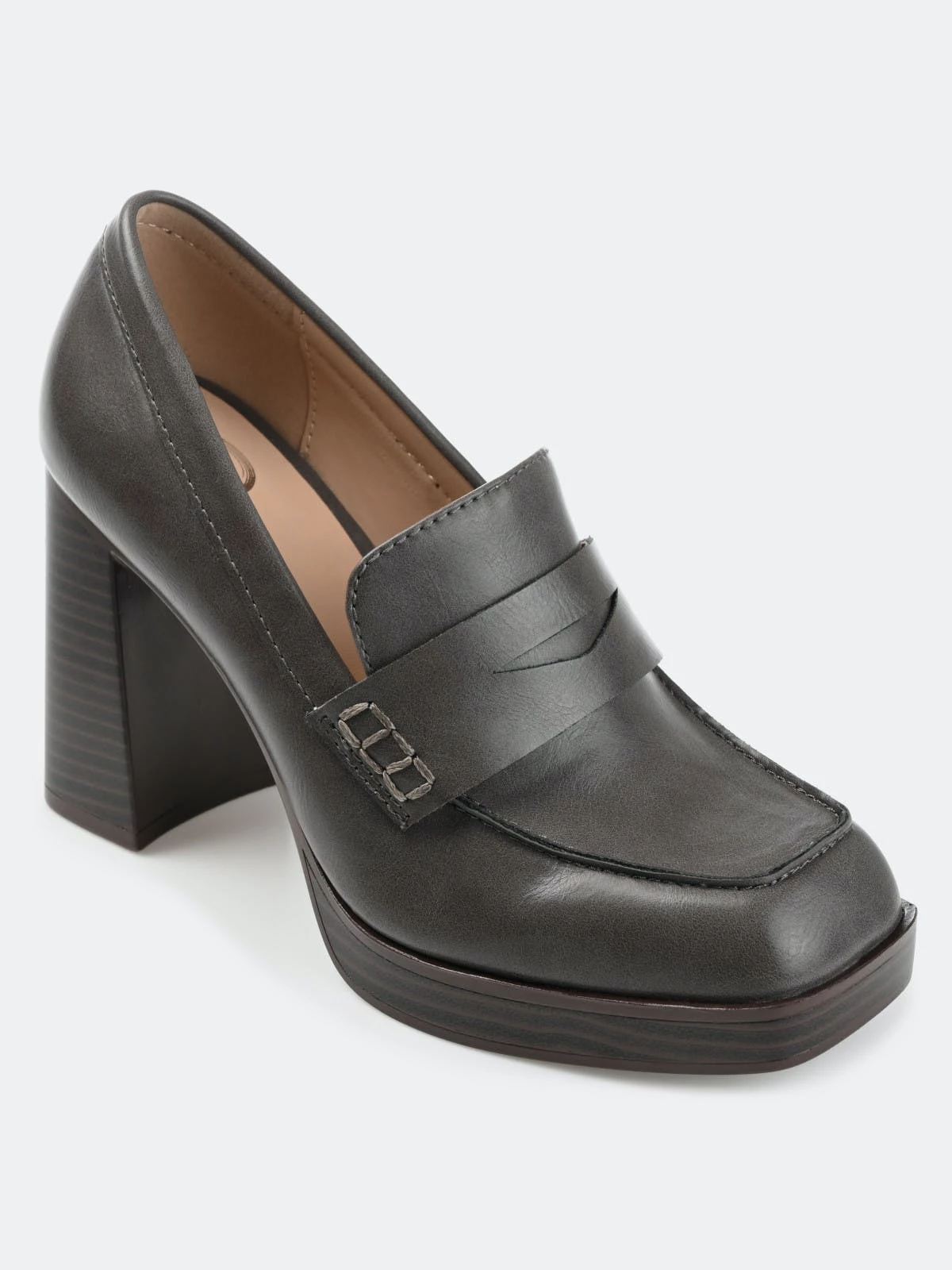 Vintage vibes define the Ezzey loafers by Journee Collection. This vegan leather loafer is detailed with a strap accent and a square toe for a super chic look. A block heel lined with a padded footbed elevates this slip-on silhouette. At journee collection, this pump styles will let you go from a fun night out with the girls to kicking back and relaxing at the end of the night without any trouble.