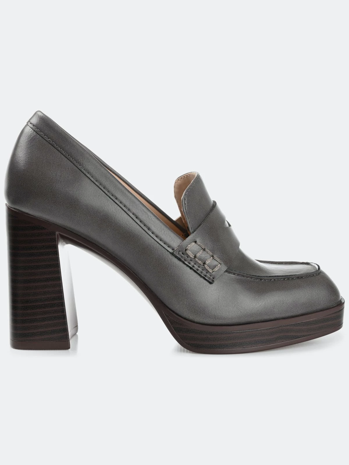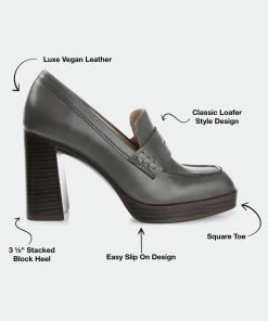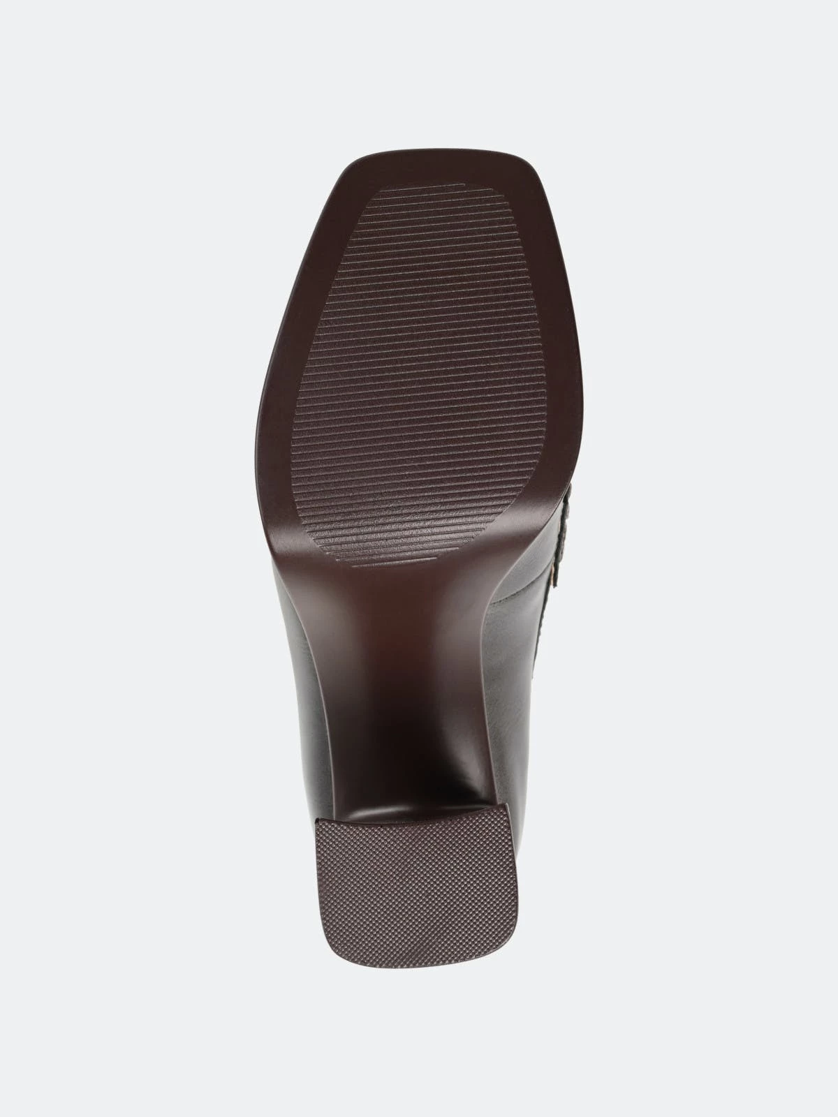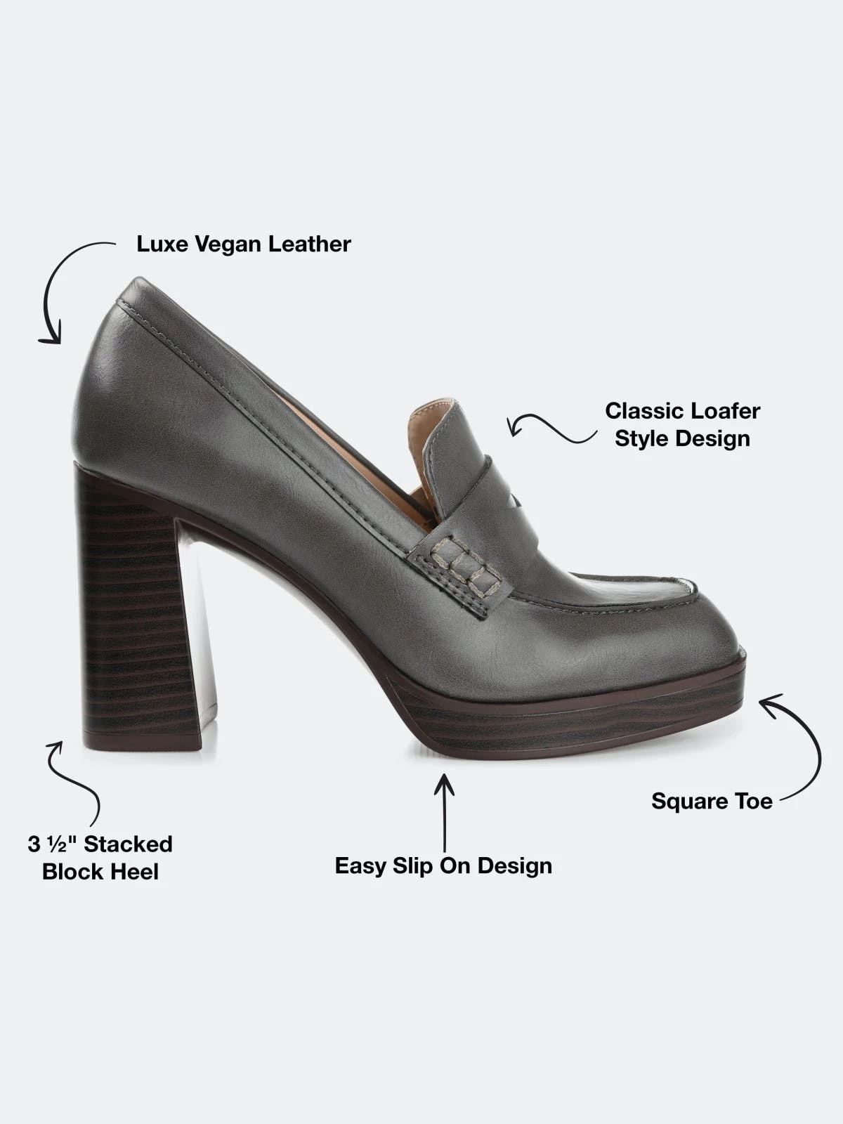 Vintage vibes define the Ezzey loafers by Journee Collection. This vegan leather loafer is detailed with a strap accent and a square toe for a super chic look. A block heel lined with a padded footbed elevates this slip-on silhouette. At journee collection, this pump styles will let you go from a fun night out with the girls to kicking back and relaxing at the end of the night without any trouble.