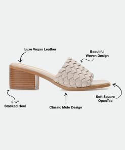 Slide into a chic new look with the Fylicia by Journee Collection. This mule silhouette is shaped with vegan leather and a comfortable padded footbed paired with a walkable block heel. An open toe adds a flirty finish, and a woven design details the vamp.Heel Height:2 1/4-inchHeel Type: Stacked Platform Height:Flat-inchShoe Width: MediumClosure Type: Slip-onToe Style: OpenLining: Faux LeatherUpper Material: Vegan LeatherOutersole Material: Man-madeFootbed: PaddedAll measurements are approximate and were taken using a size 6. Please note measurements may vary slightly by size.
