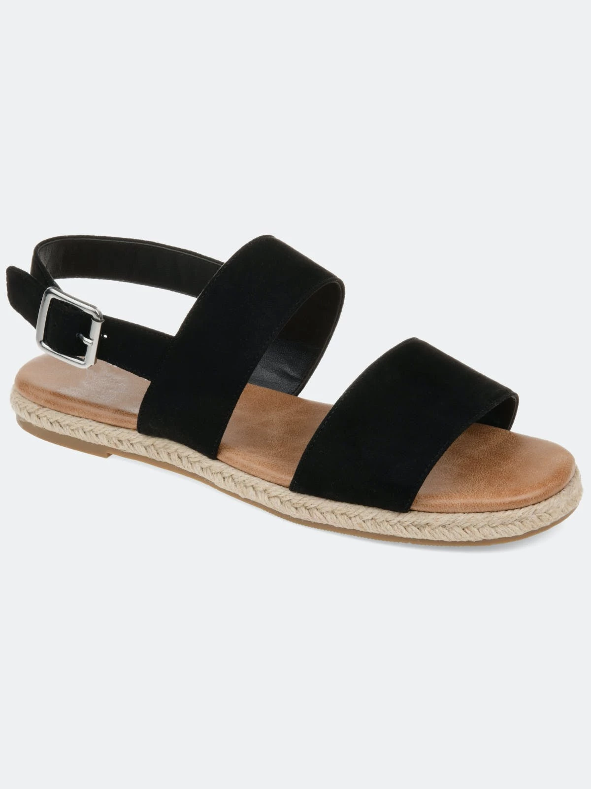 The Georgia sandal is a cute and versatile sandal, and you won’t need anything else! This sandal features an espadrille bottom with two thick straps. The square buckle adds a fun touch, and the cushioned insole completes the look for lasting wear.Heel Height:1-inchHeel Type: Sole Platform Height:1/2-inchShoe Width: MediumClosure Type: BuckleStrap Type: AnkleToe Style: OpenLining: Faux LeatherUpper Material: Faux SuedeOutersole Material: SyntheticFootbed: CushionedAll measurements are approximate and were taken using a size 6. Please note measurements may vary slightly by size.