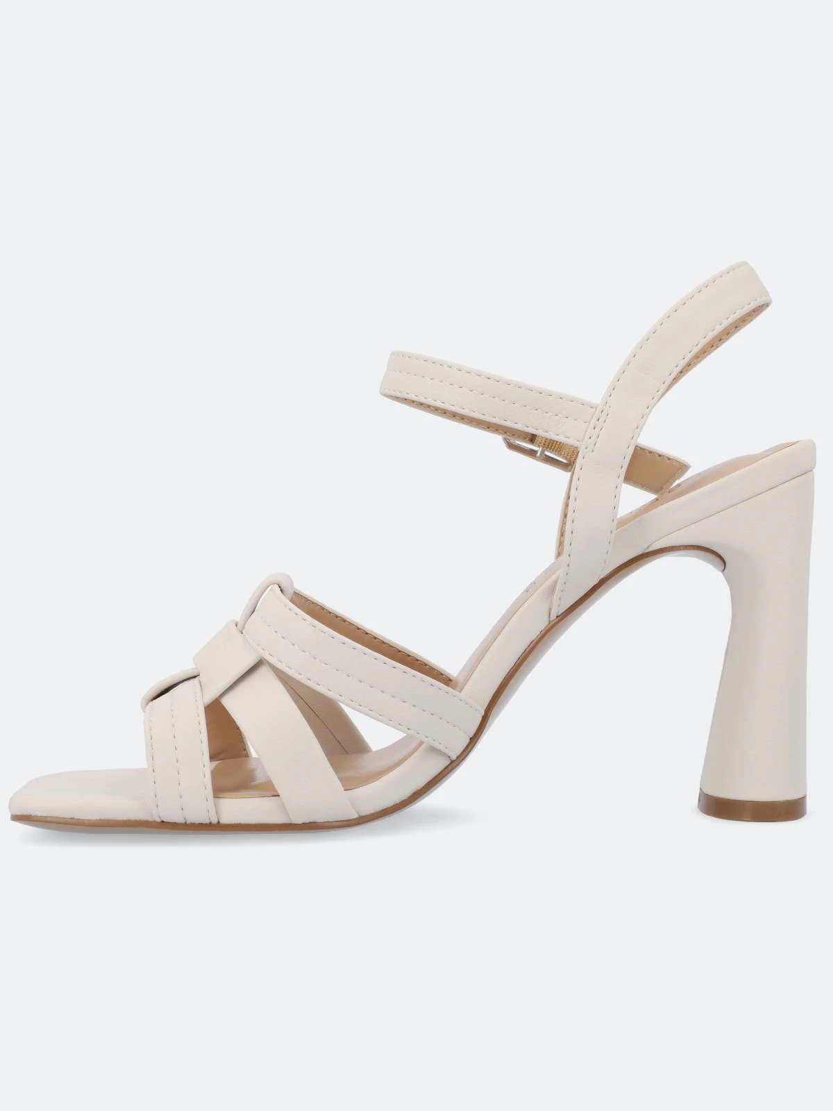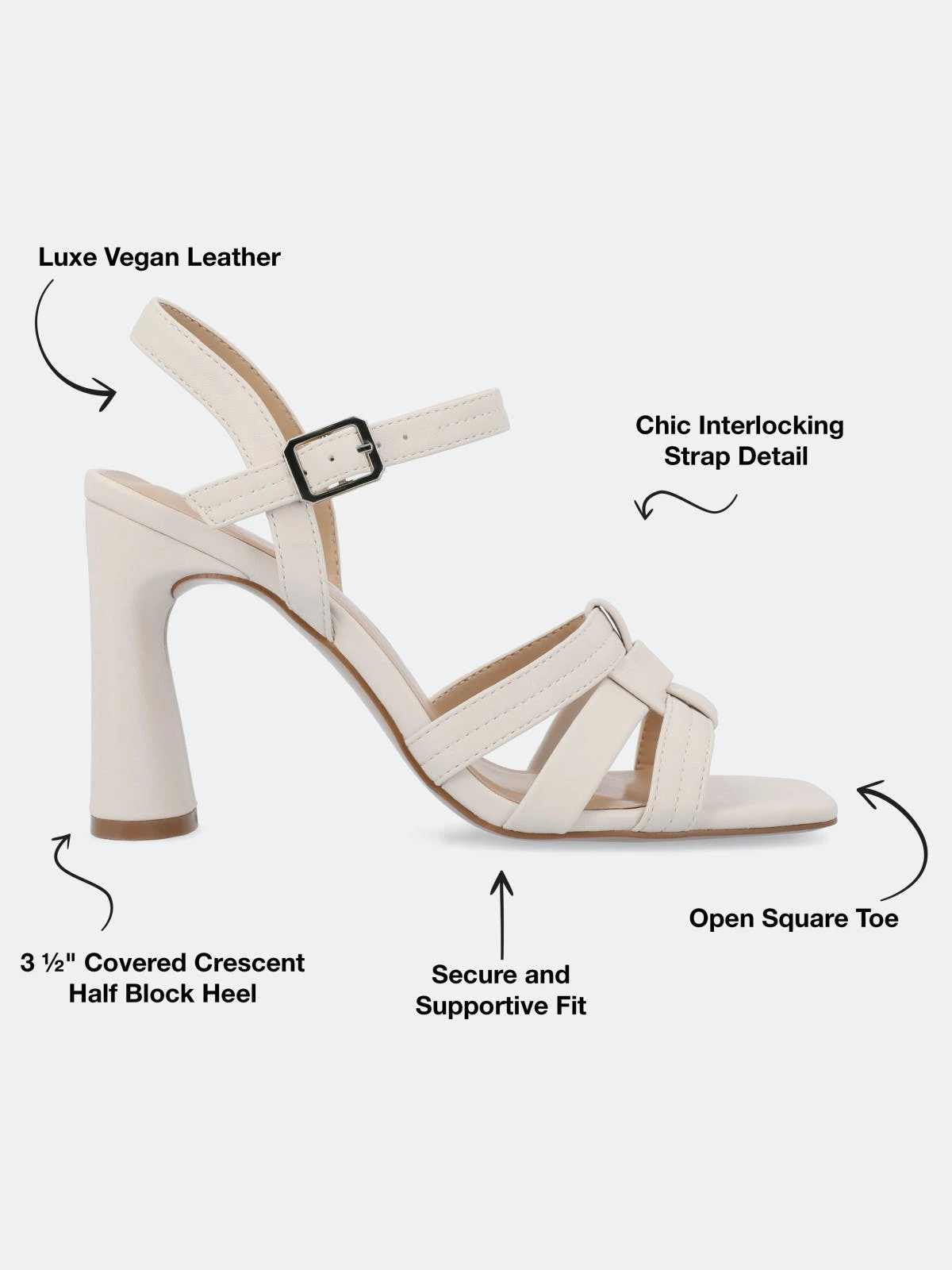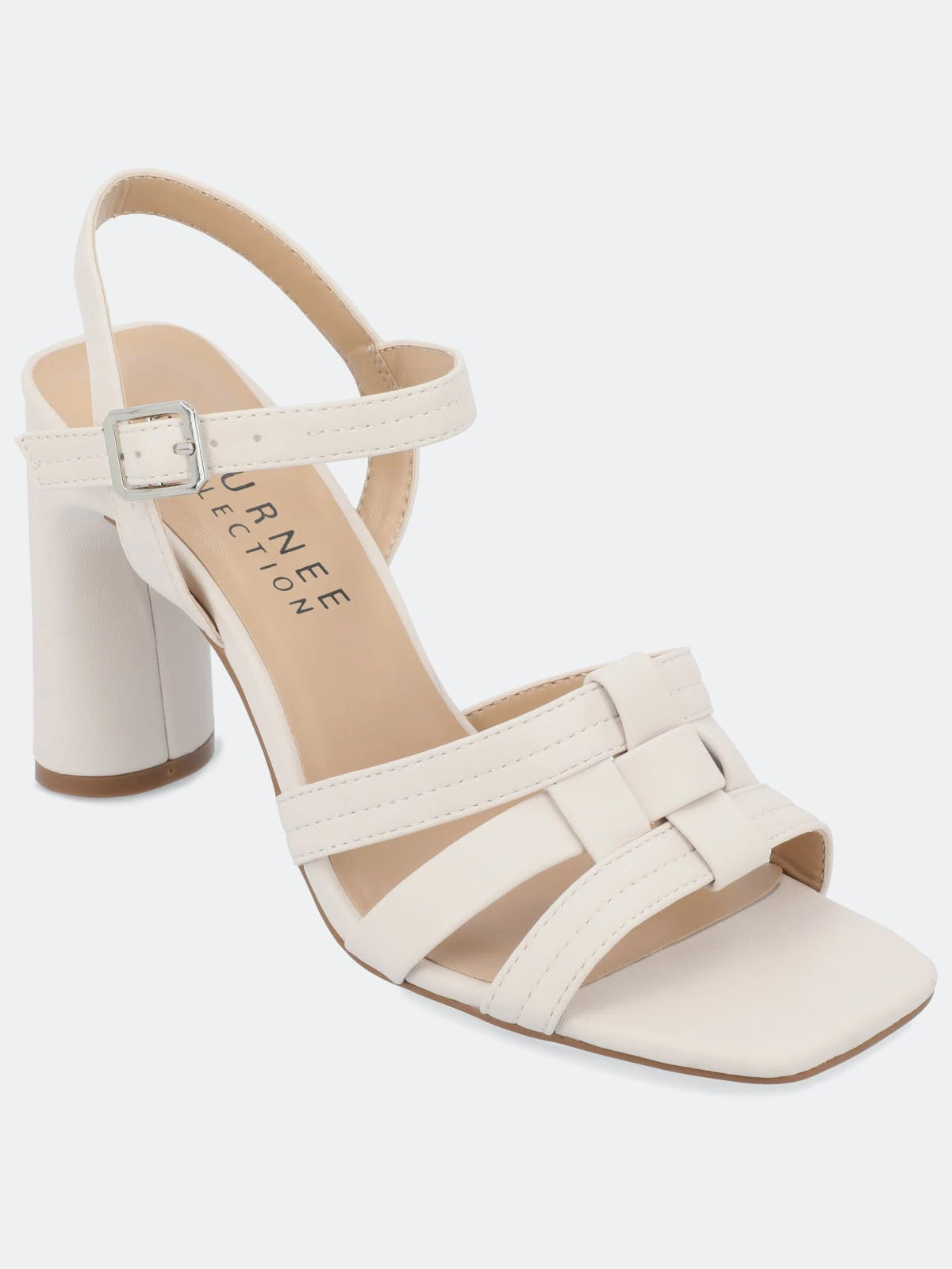 The Gibssen block heel sandals from Journee Collection will be your favourite shoe in your closet. With their luxe vegan leather, buckled ankle strap, and interlocking strap design, they will have you walking around in all the styles you could dream of. Their padded footbed and open square-toe shape will make your feet more comfortable than ever.