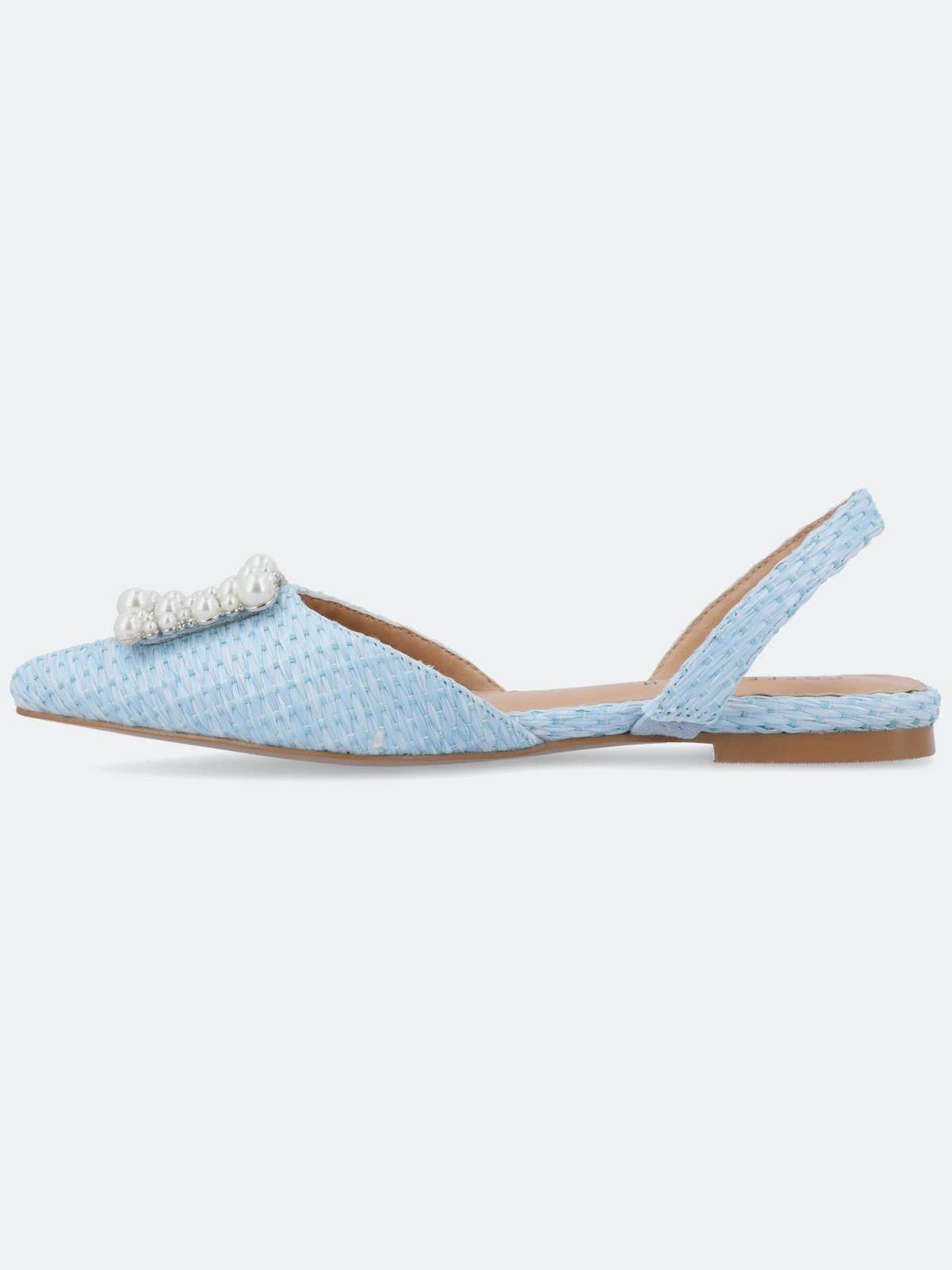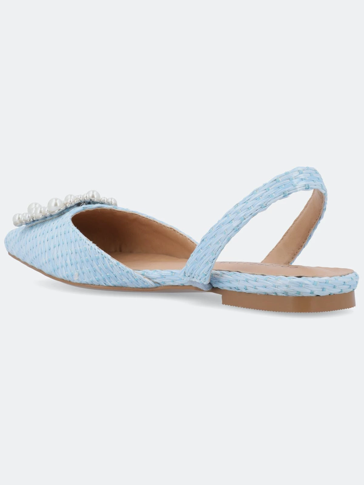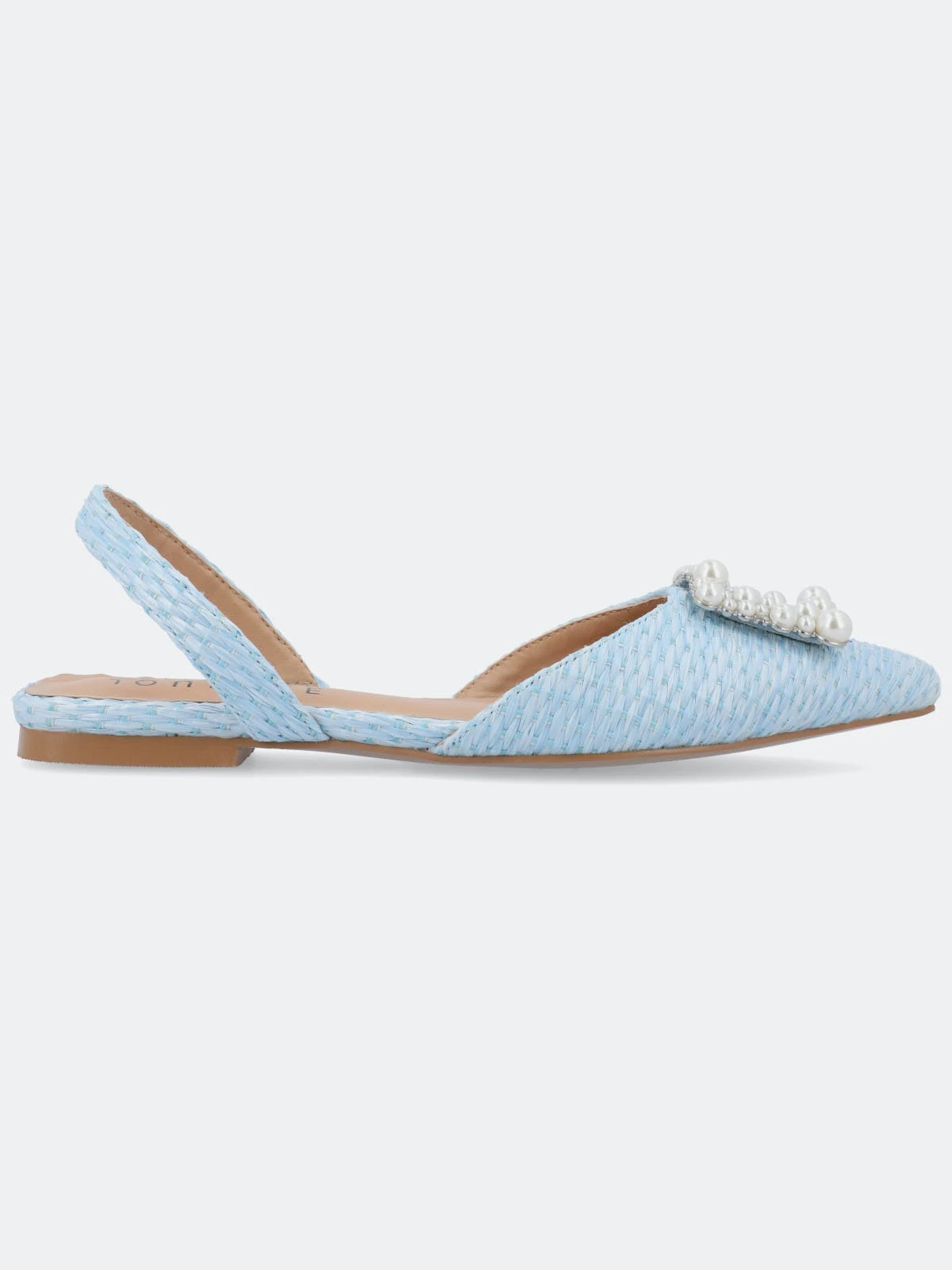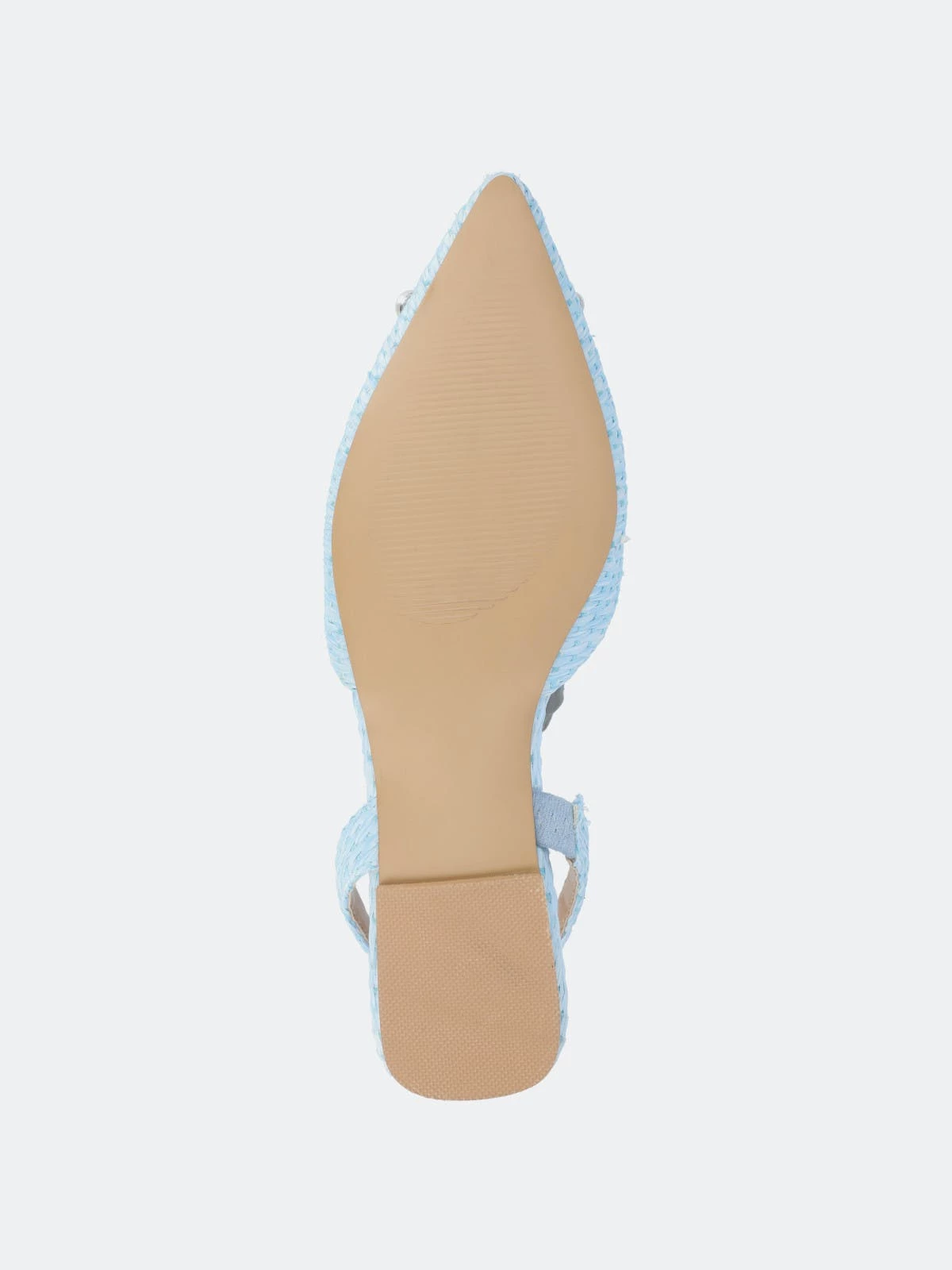 The Hannae flat from Journee Collection will take you from work to a nice dinner outing with ease. This glam flat can match just about everything thanks to the raffia-inspired material, sling-back strap, gem detail and pointed-toe. To add a little something extra, their padded footbed and pull-on closure will keep your feet comfortable with every step.