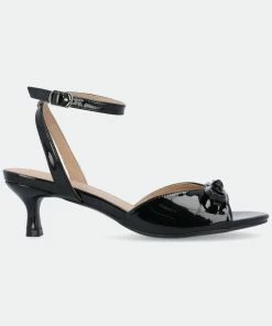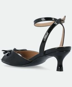 The Jennifer kitten heels from Journee Collection will be the perfect finishing touch to your outfit with their bow detail. Made with patent vegan leather, buckled ankle strap, and an open round toe, this design will give you all the style you need to leave your house with a boost of confidence. Continuing to keep your feet happy, their padded footbed will leave your feet on top of the world with how comfortable they will feel.