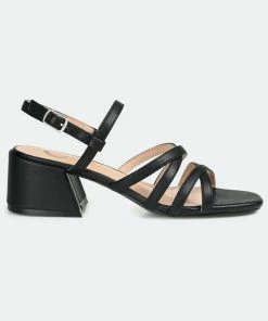 An oldie but a goodie, the Kempsy by Journee Collection. You can instantly add some flair to your outfit with this multi-strap heel. A padded insole lines this footbed, and a covered block heel gives you a little lift.Heel Height:2-inchHeel Type: Block Heel Platform Height:Flat-inchShoe Width: MediumClosure Type: BuckleStrap Type: AnkleToe Style: OpenLining: Faux LeatherUpper Material: Vegan LeatherOutersole Material: Man-madeFootbed: PaddedAll measurements are approximate and were taken using a size 6. Please note measurements may vary slightly by size.