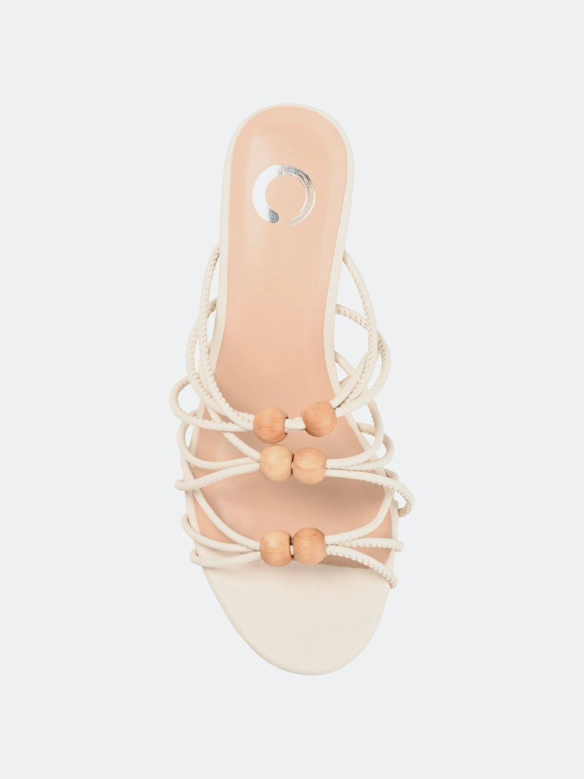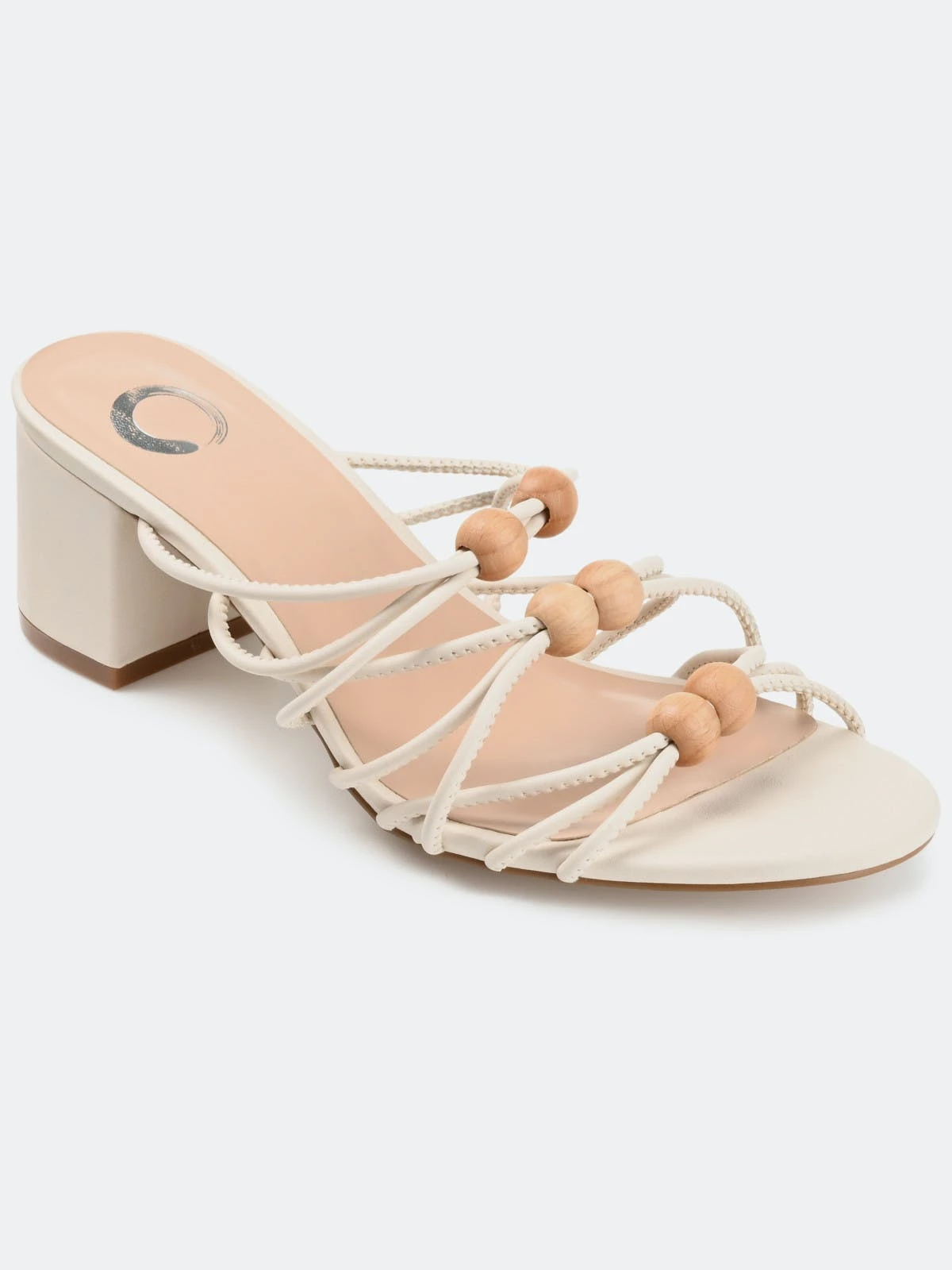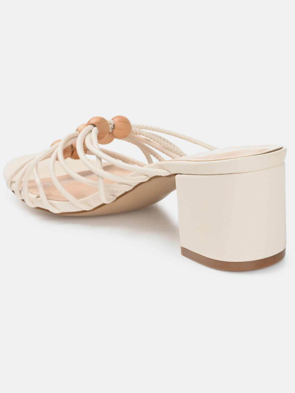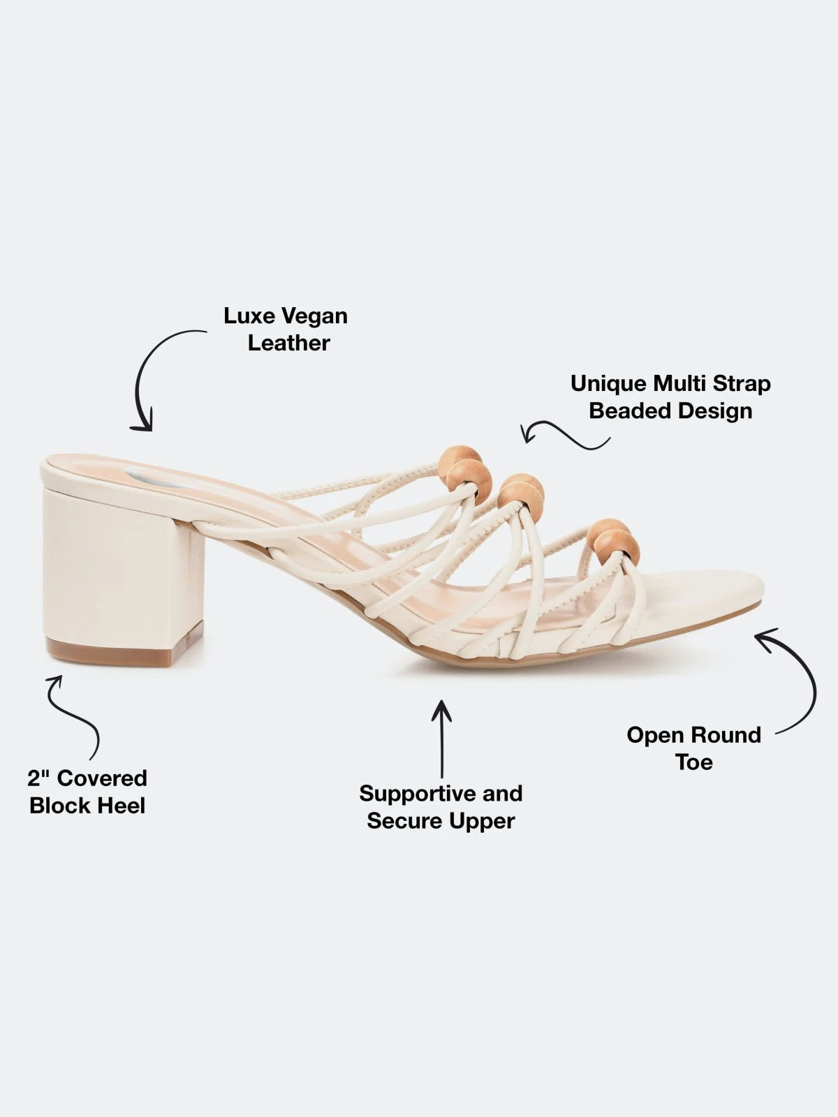 Shoes with fabulous places to go, the Kennadi by Journee Collection. This summery heel features multiple straps topped with beaded details. A block heel, soft vegan leather, and padded footbed finish this fresh look.Heel Height:2-inchHeel Type: Block Heel Platform Height:Flat-inchShoe Width: MediumClosure Type: Slip-onStrap Type: Multi -StrapToe Style: OpenLining: Faux LeatherUpper Material: Vegan LeatherOutersole Material: Man-madeFootbed: PaddedAll measurements are approximate and were taken using a size 6. Please note measurements may vary slightly by size.