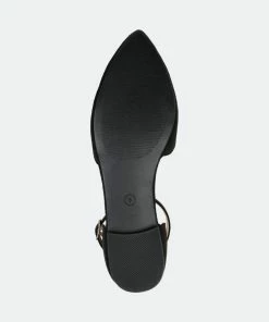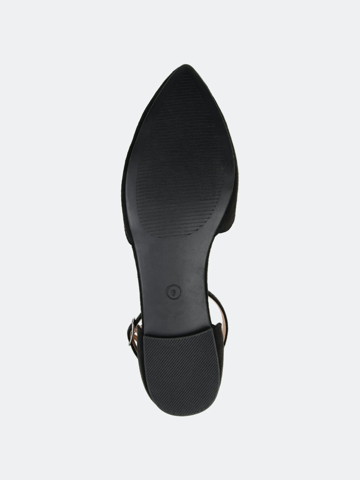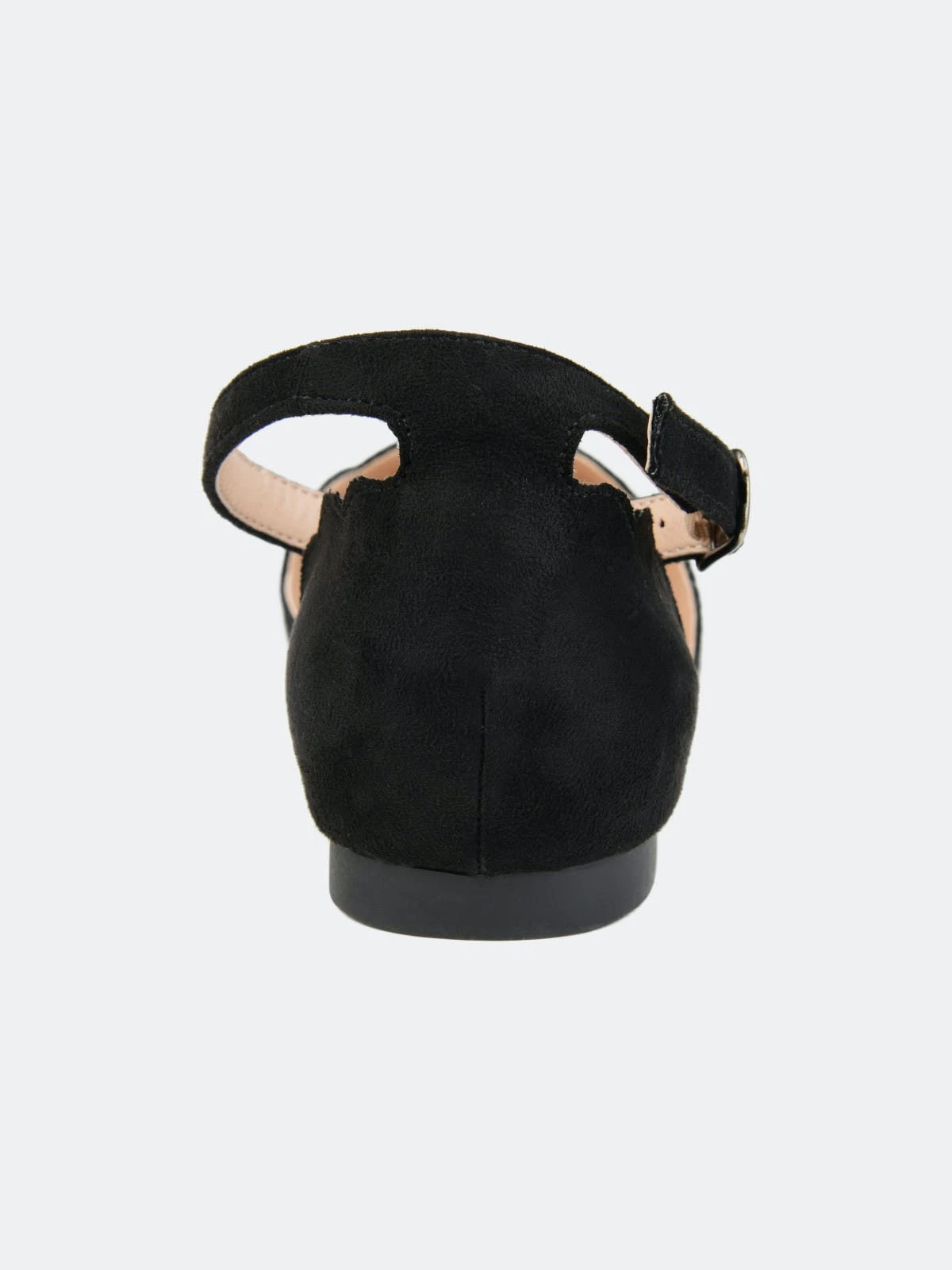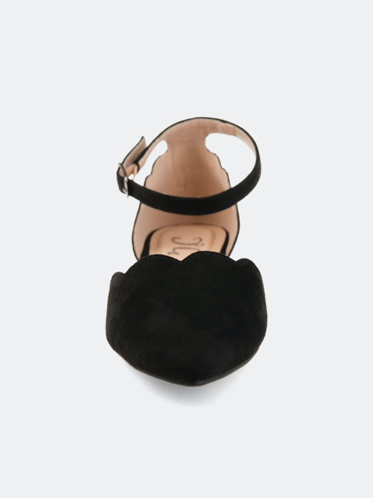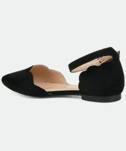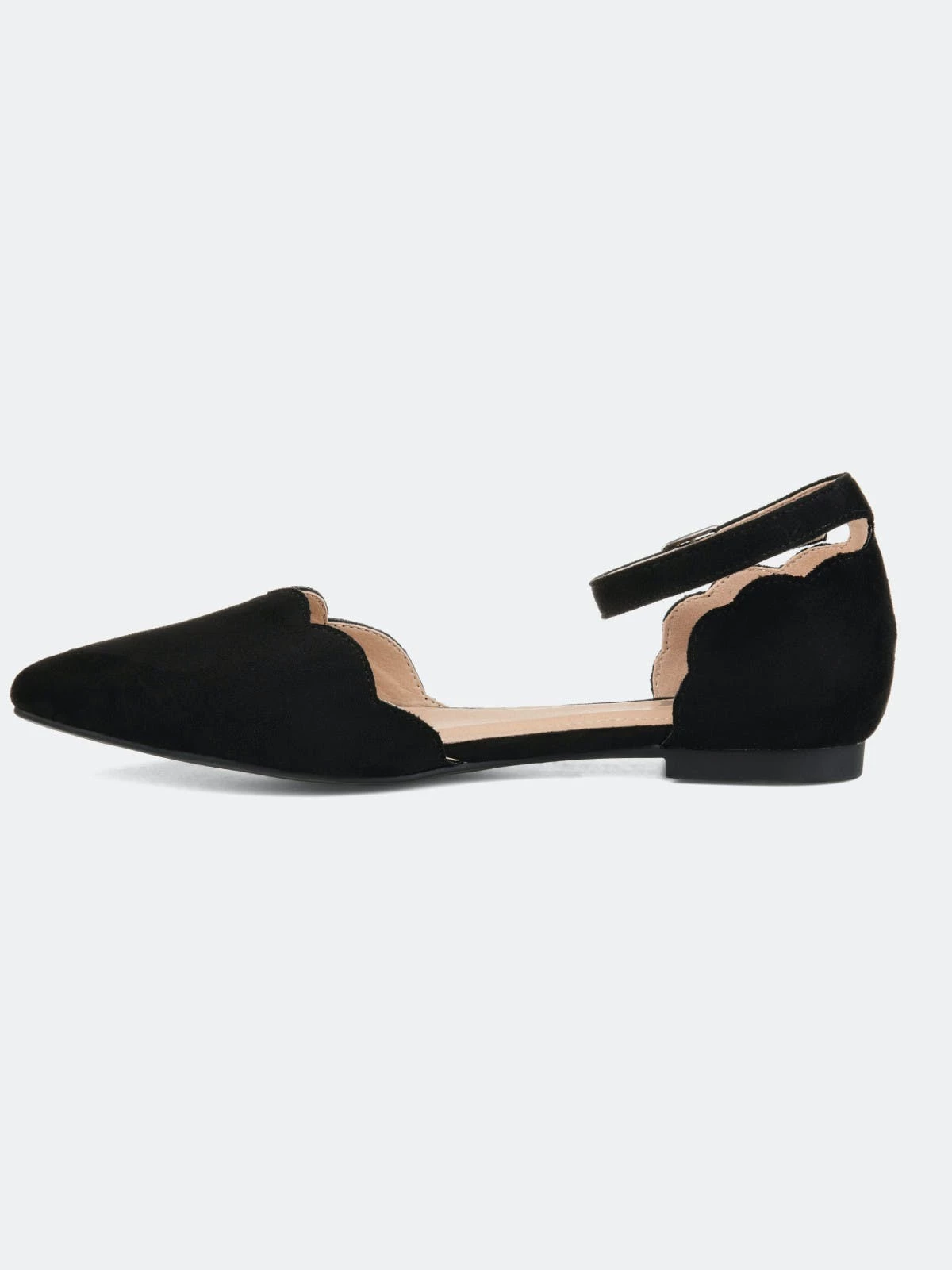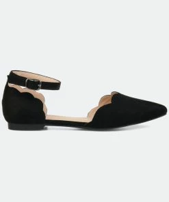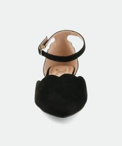 Point your toe in style with the Lana flat by Journee Collection. This flat features a pointed toe, scalloped detail on the toe and heel, and an ankle buckle strap. This dainty flat can easily be transformed from day to night.Heel Height:1/2-inchHeel Type: Block Heel Platform Height:Flat-inchShoe Width: MediumClosure Type: BuckleStrap Type: AnkleToe Style: PointedLining: Faux LeatherUpper Material: Micro SuedeOutersole Material: RubberFootbed: PaddedAll measurements are approximate and were taken using a size 6. Please note measurements may vary slightly by size.