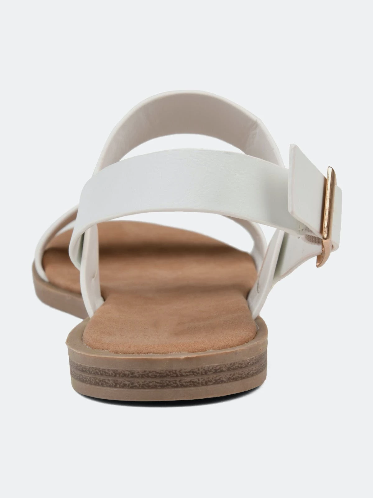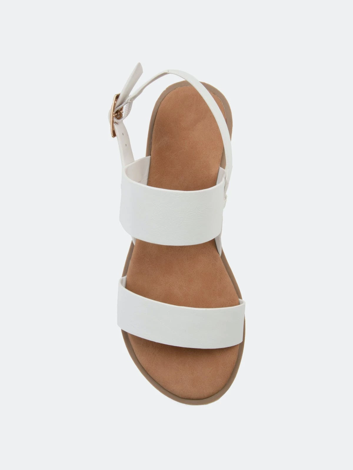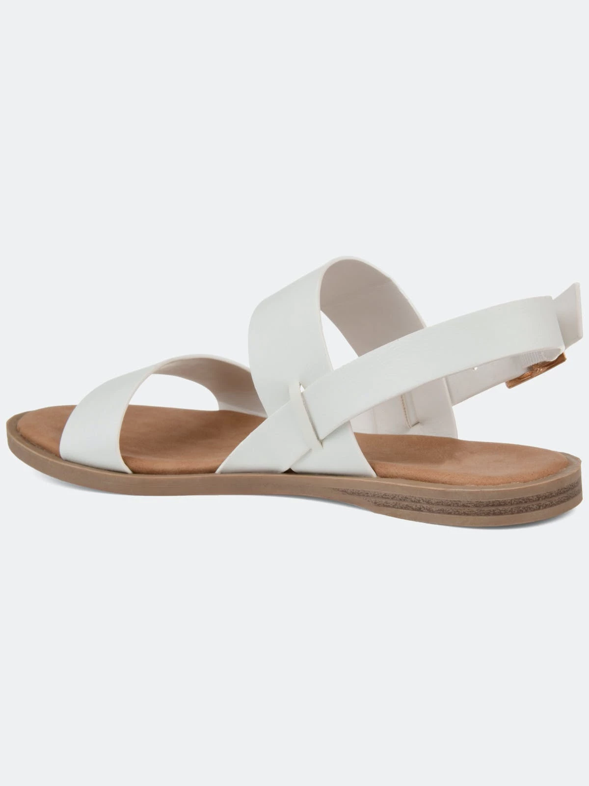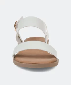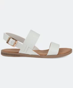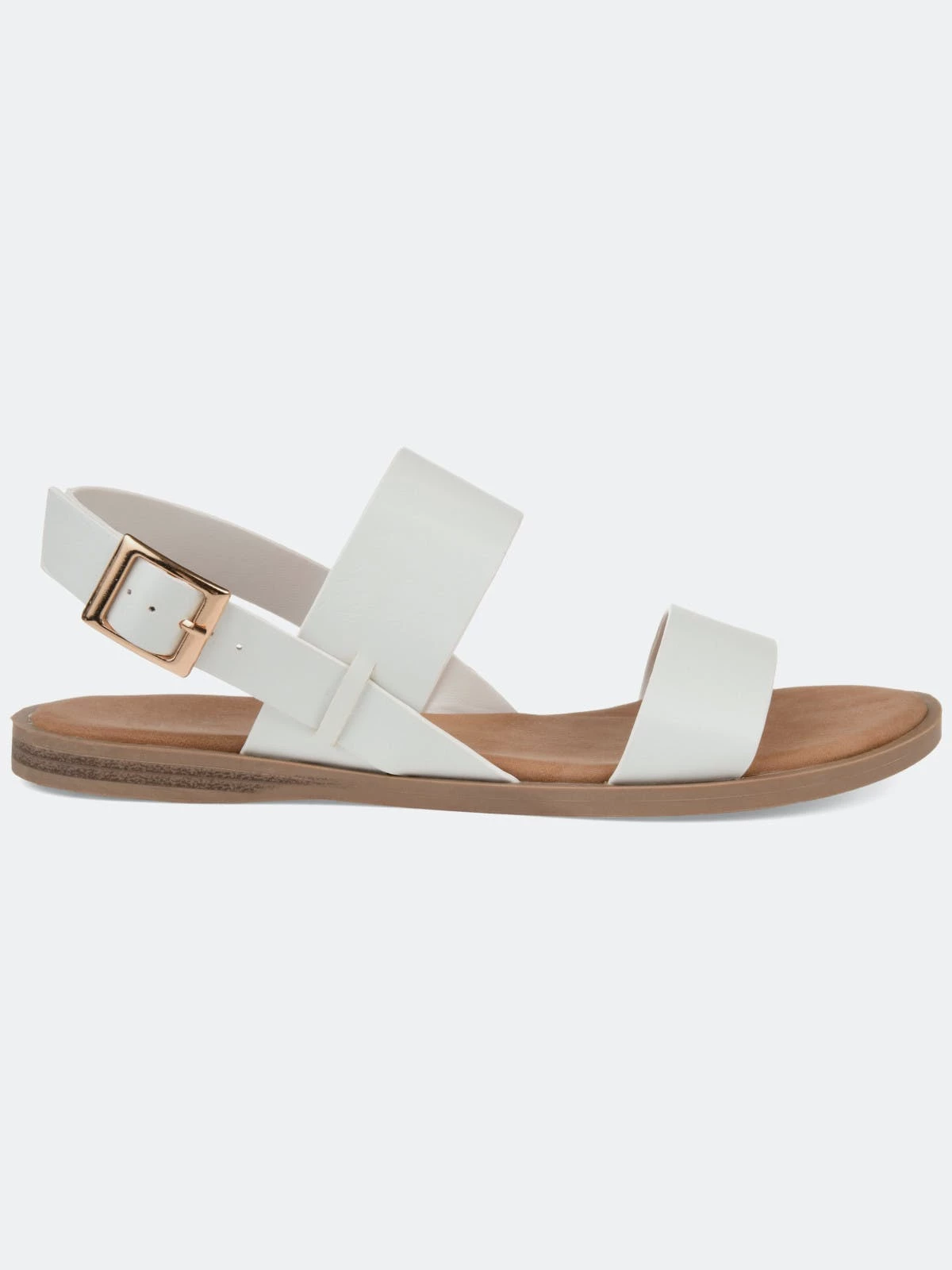 Refresh your closet with the beautiful Lavine sandal by Journee Collection. This classic sandal features a thick two strap design with a cushioned insole for those all-day summer activities. This sandal also showcases a flexible outsole, and the gold buckle completes the design.Heel Height:1/2-inchHeel Type: Sole Platform Height:1/2-inchShoe Width: MediumClosure Type: BuckleStrap Type: AnkleToe Style: OpenLining: Faux LeatherUpper Material: Faux LeatherOutersole Material: RubberFootbed: CushionedAll measurements are approximate and were taken using a size 6. Please note measurements may vary slightly by size.