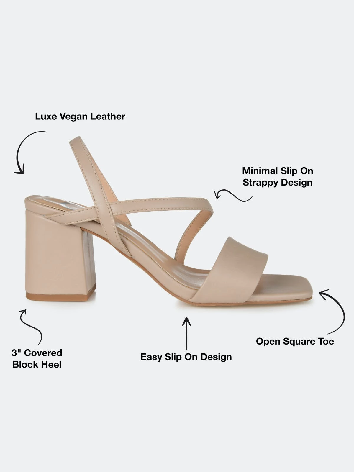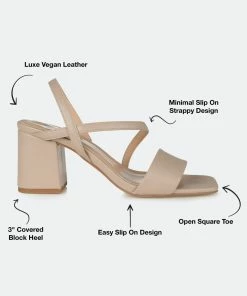 The “S” shaped strap on the Lirryc evening heel speaks for itself. This design by Journee Collection is playfully detailed with a square-toe and covered block heel. Vegan leather uppers, a padded footbed, and a slingback strap finish the look.Heel Height:3-inchHeel Type: Block Heel Platform Height:Flat-inchShoe Width: MediumClosure Type: Slip-onStrap Type: AnkleToe Style: OpenLining: Faux LeatherUpper Material: Vegan LeatherOutersole Material: Man-madeFootbed: PaddedAll measurements are approximate and were taken using a size 6. Please note measurements may vary slightly by size.