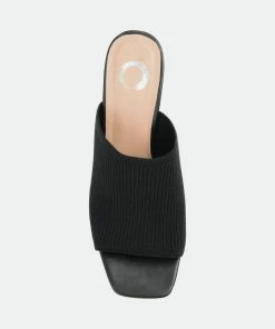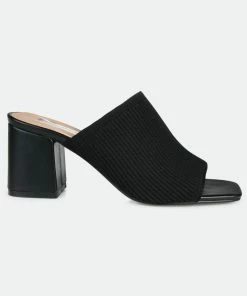 An ultra-sleek look designed to seamlessly transition from day to night. The Lorenna by Journee Collection is a slip-on silhouette shaped with knit fabric uppers lined with a padded footbed. A square-shaped toe and a covered block heel finish the look.Heel Height:3-inchHeel Type: Block Heel Platform Height:Flat-inchShoe Width: MediumClosure Type: Slip-onToe Style: OpenLining: FabricUpper Material: FabricOutersole Material: Man-madeFootbed: PaddedAll measurements are approximate and were taken using a size 6. Please note measurements may vary slightly by size.